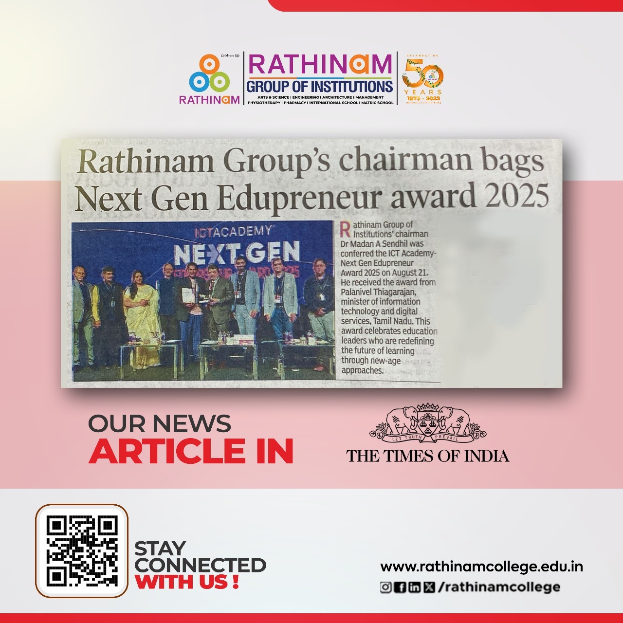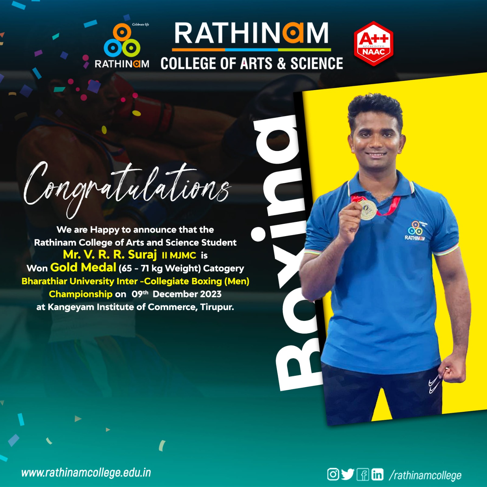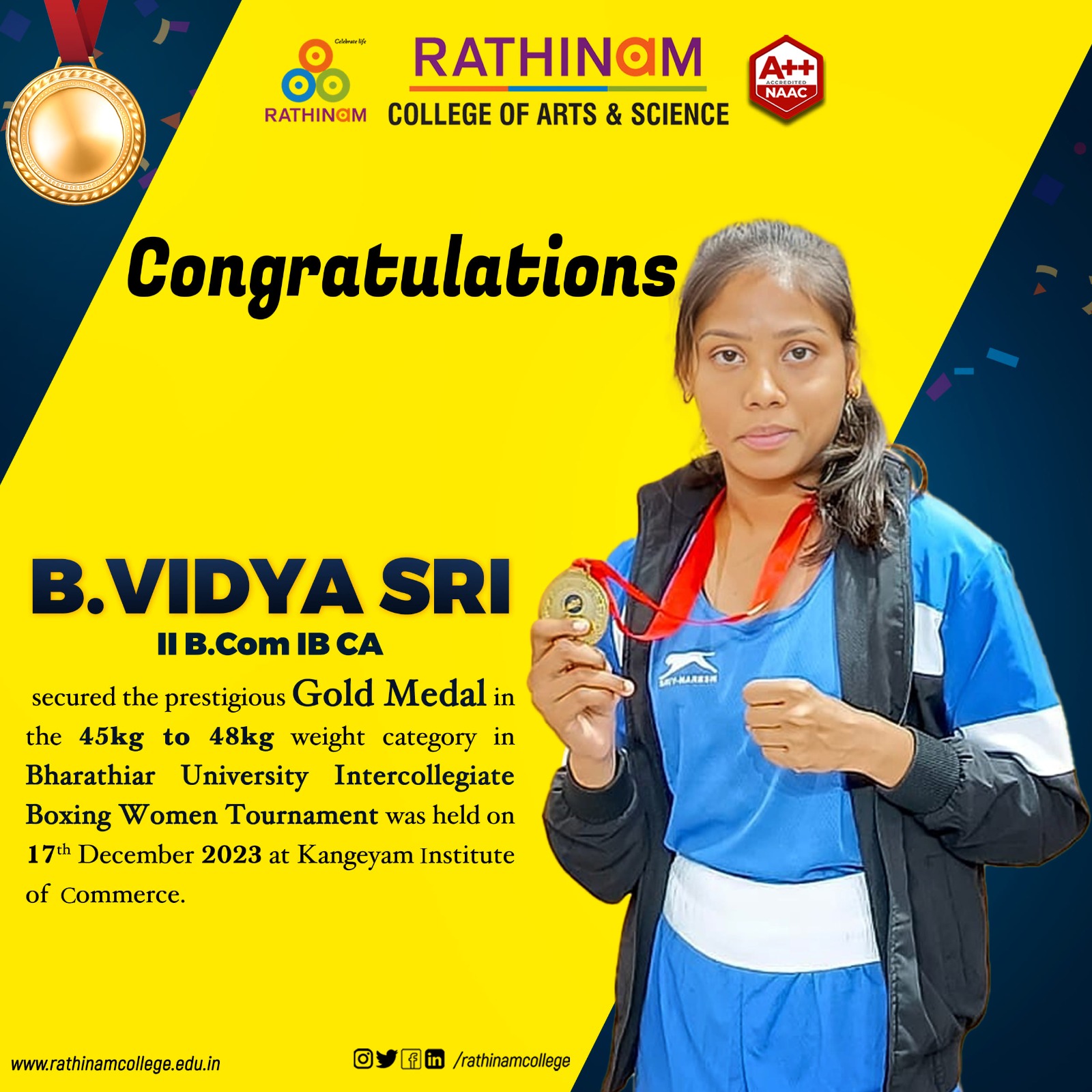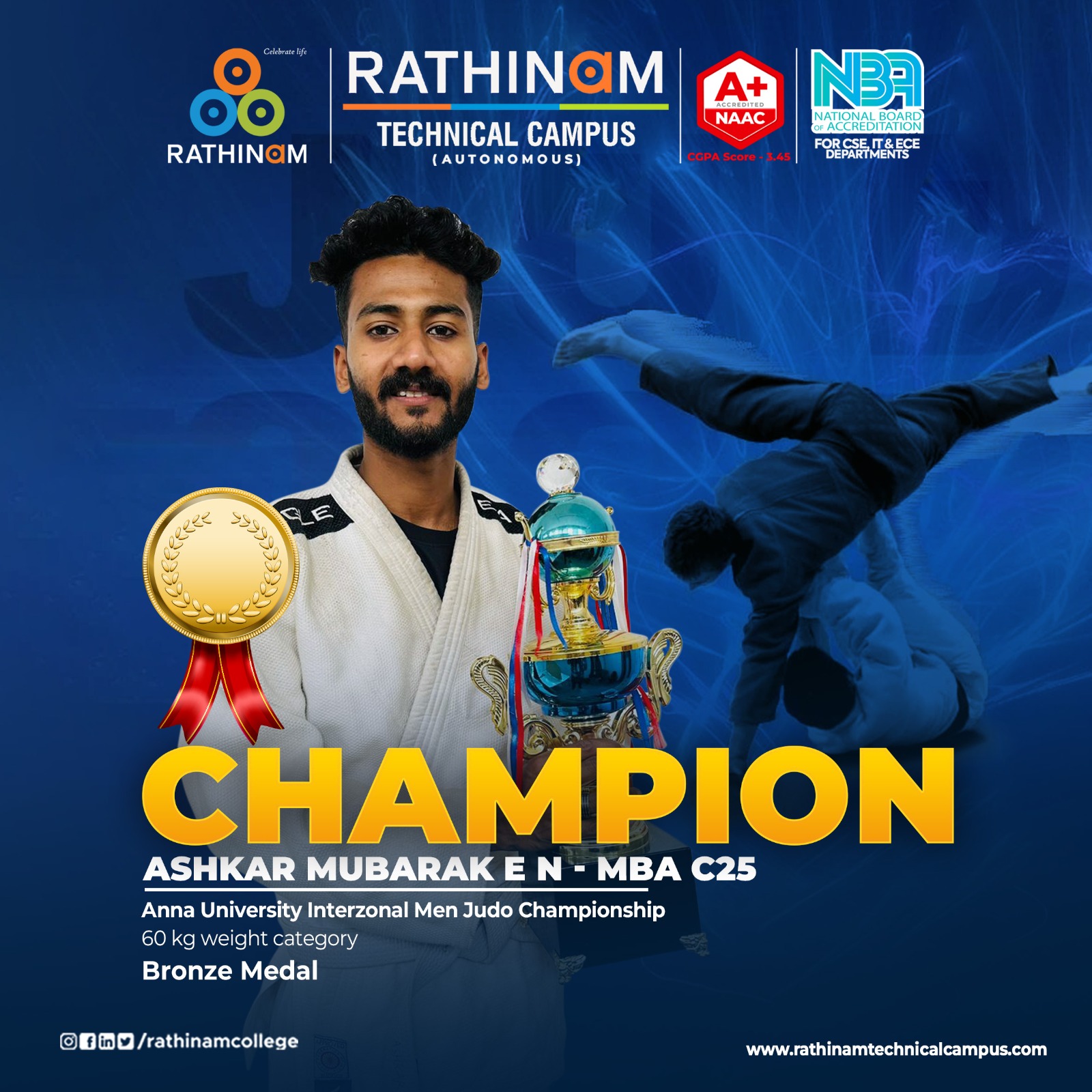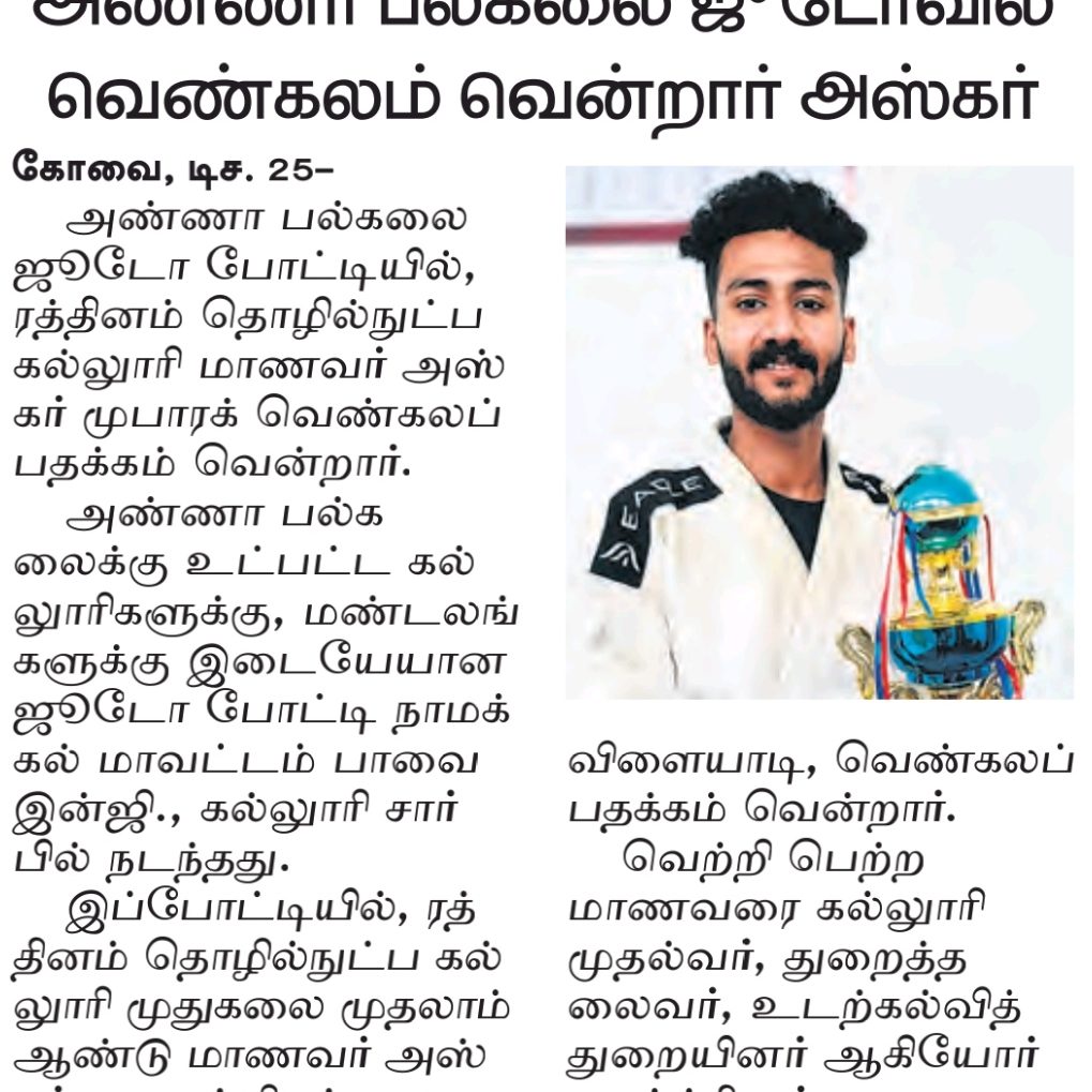 Our students never cease to amaze us! This karate star is a shining example of the talent we have at Rathinam Group of Institutions