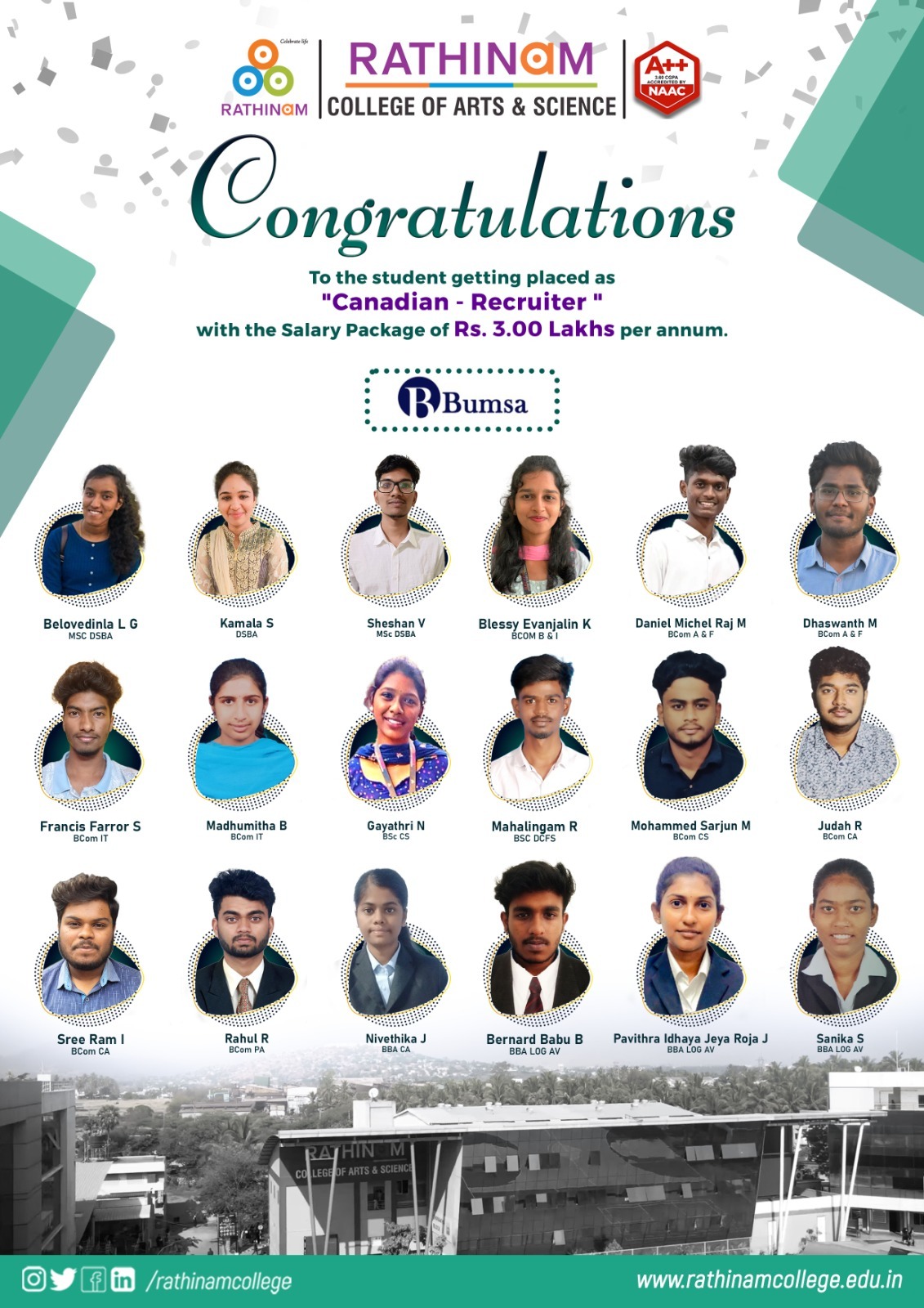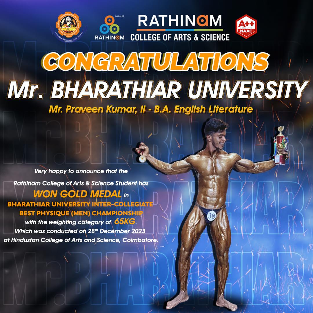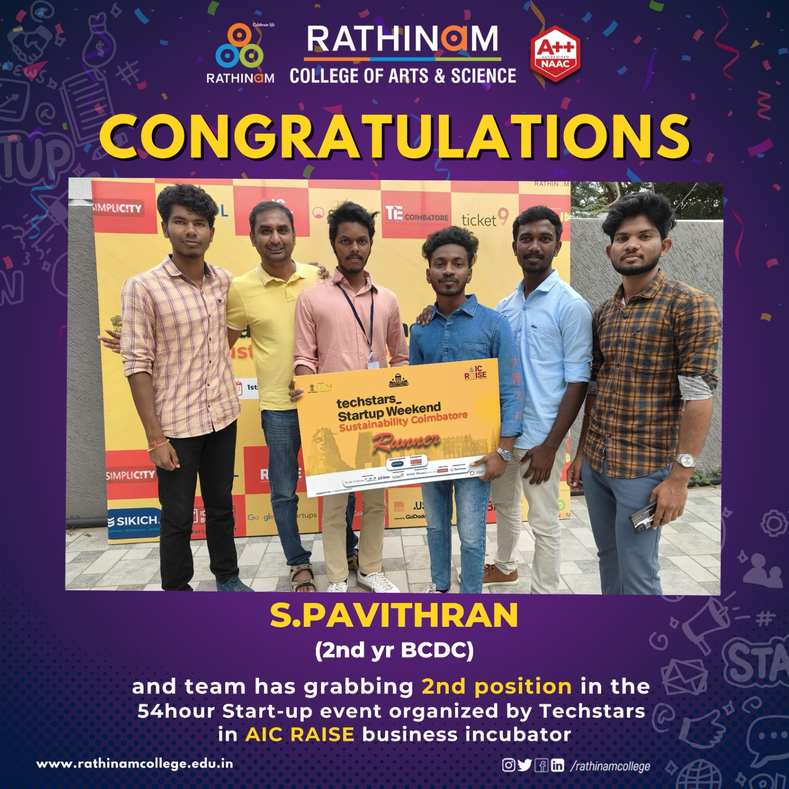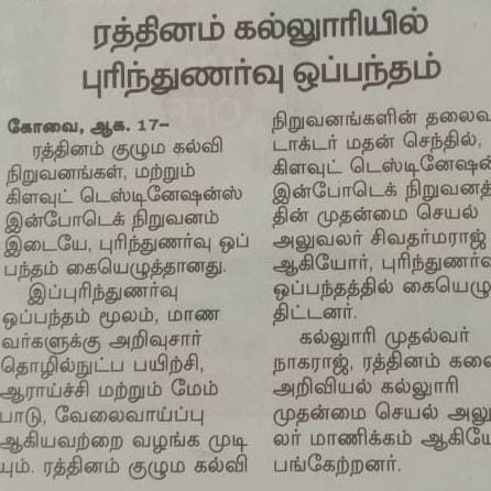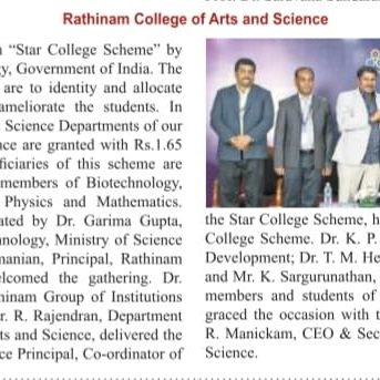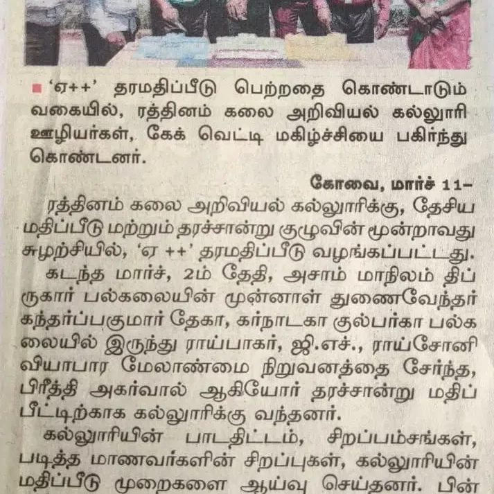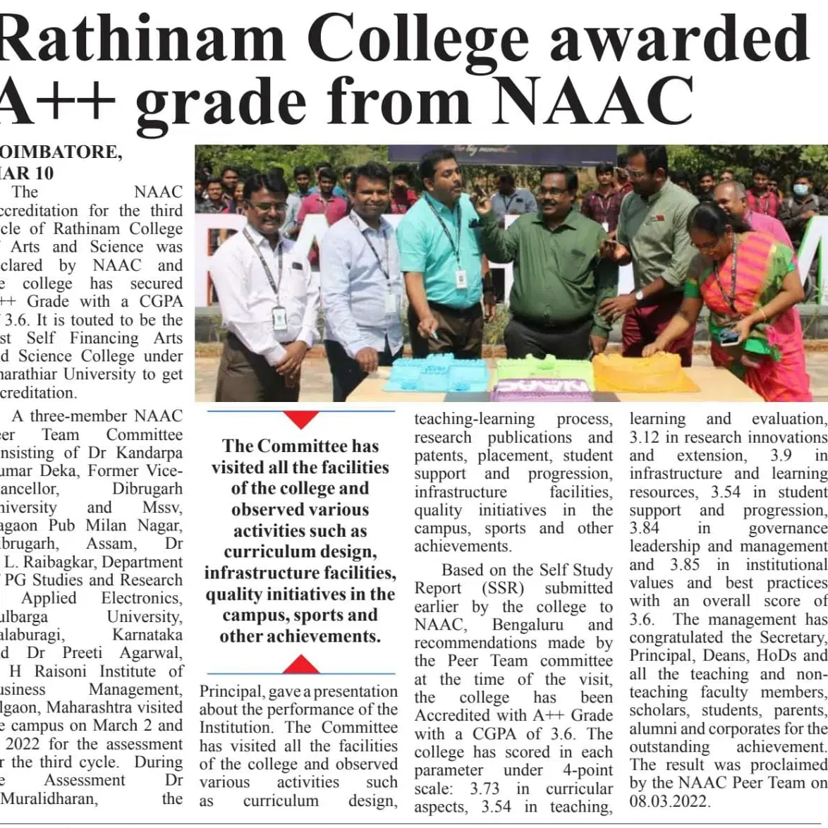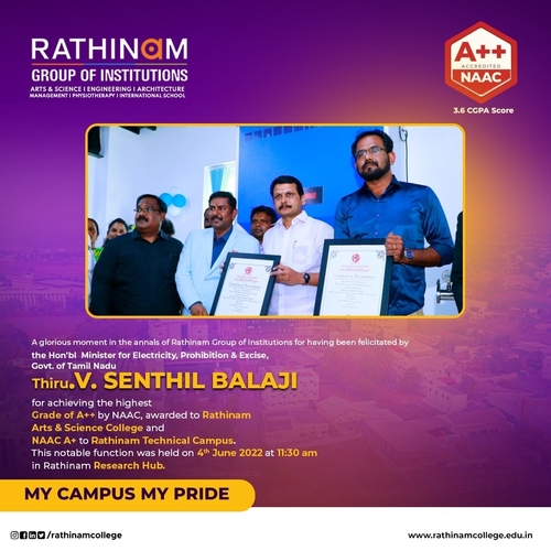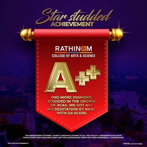 - NAAC A++ grade – 3.60 Score – Rathinam College of Arts and Science