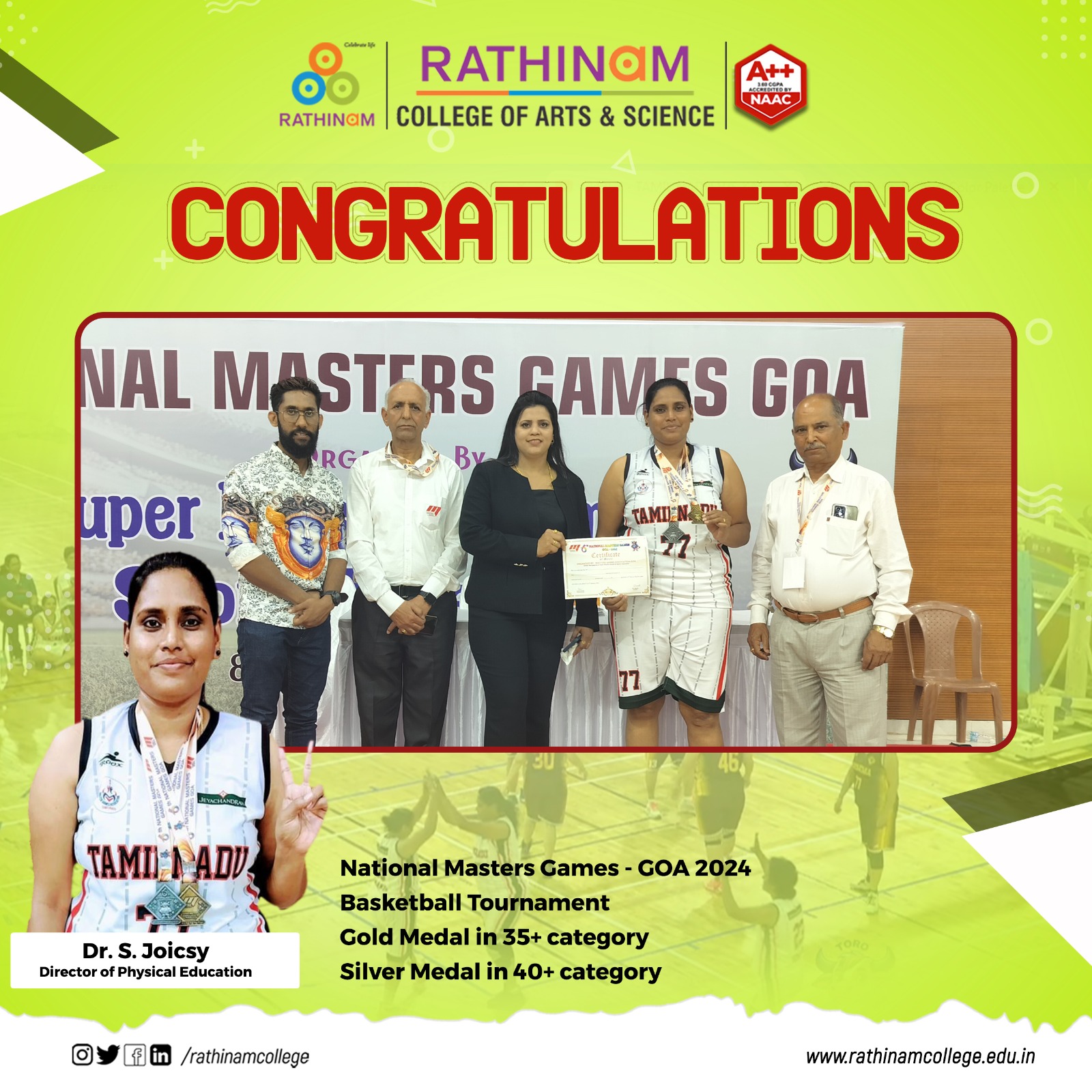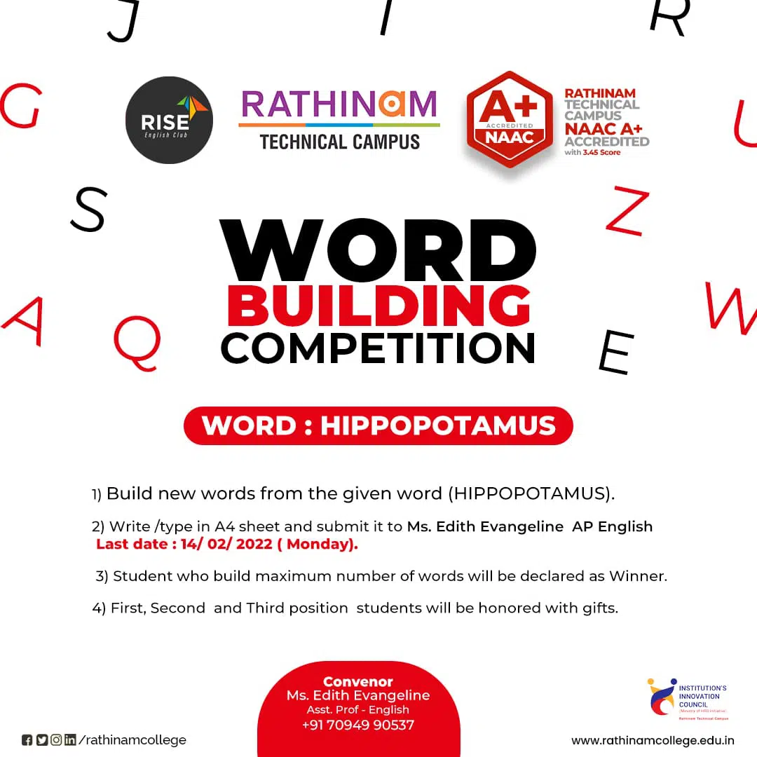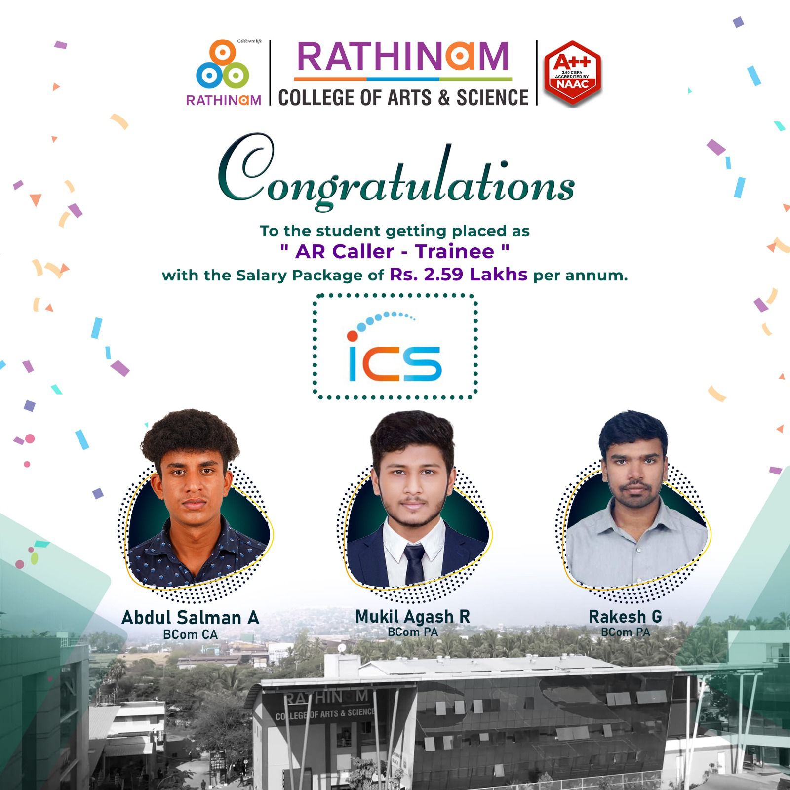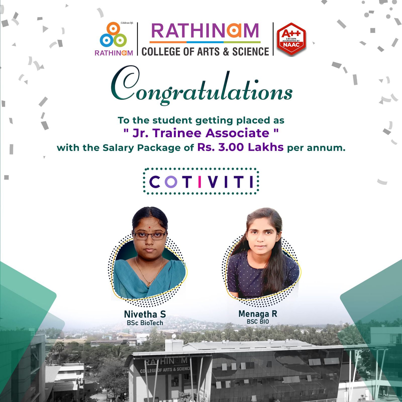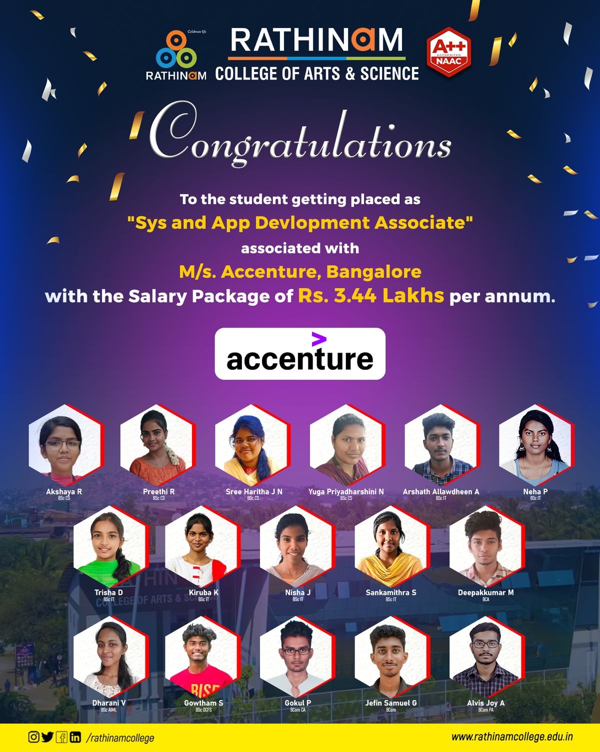 - NAAC A++ grade – 3.60 Score – Rathinam College of Arts and Science