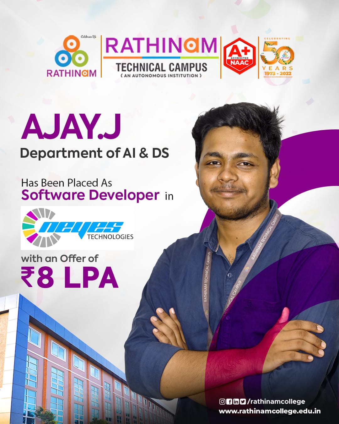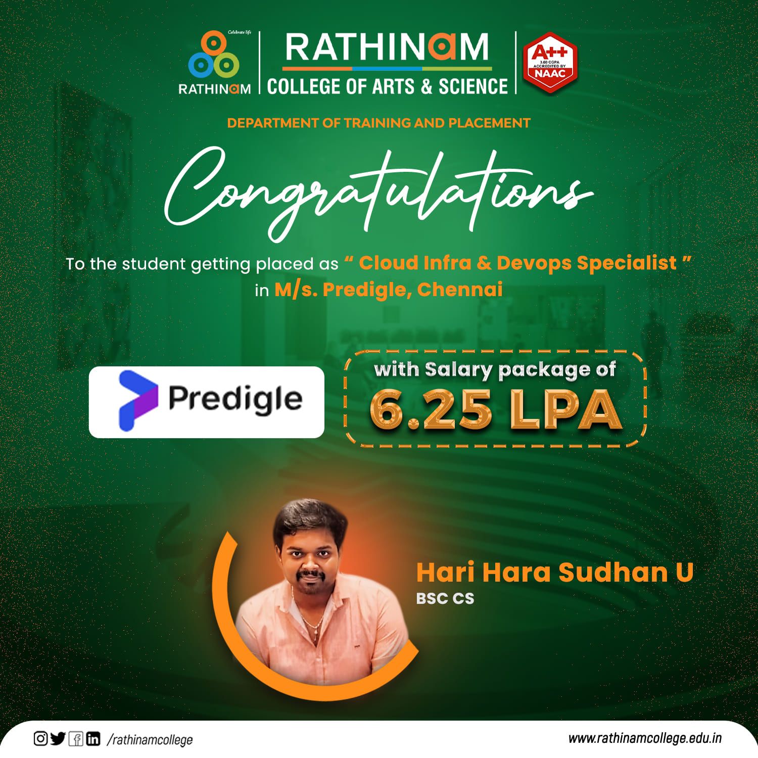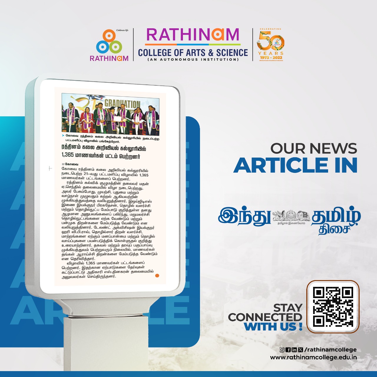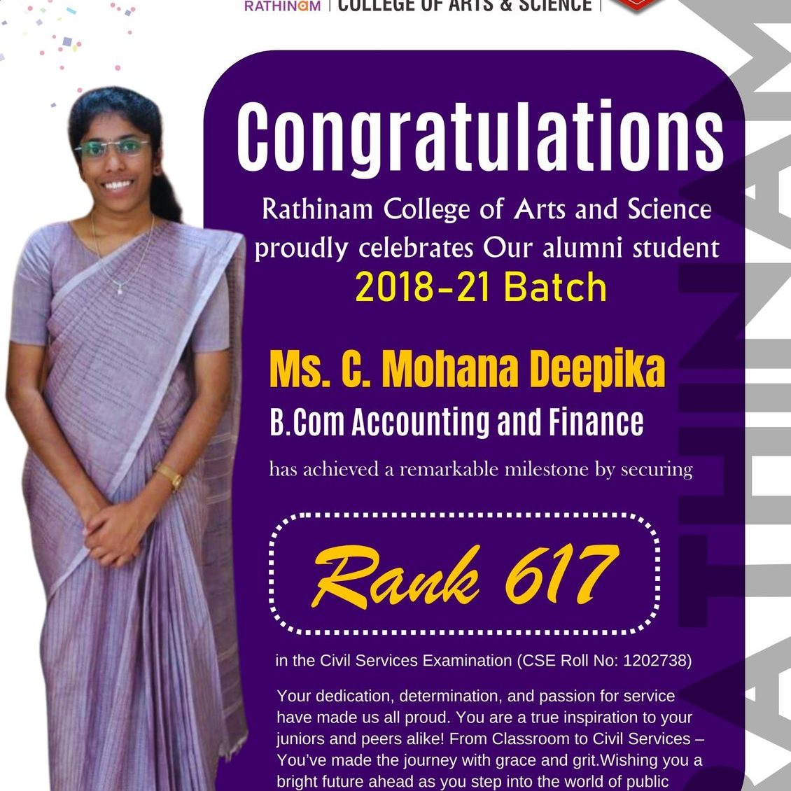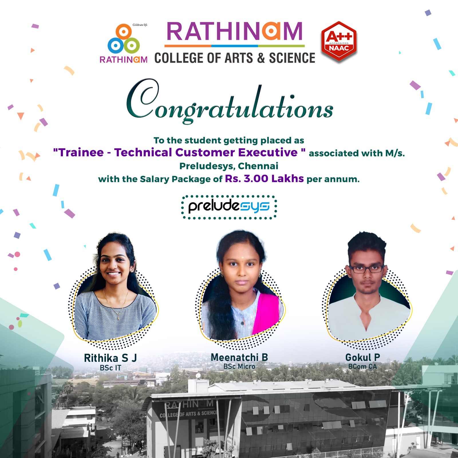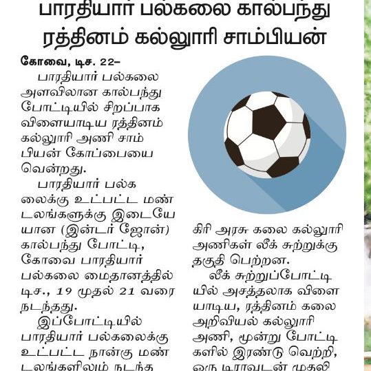 - NAAC A++ grade – 3.60 Score – Rathinam College of Arts and Science