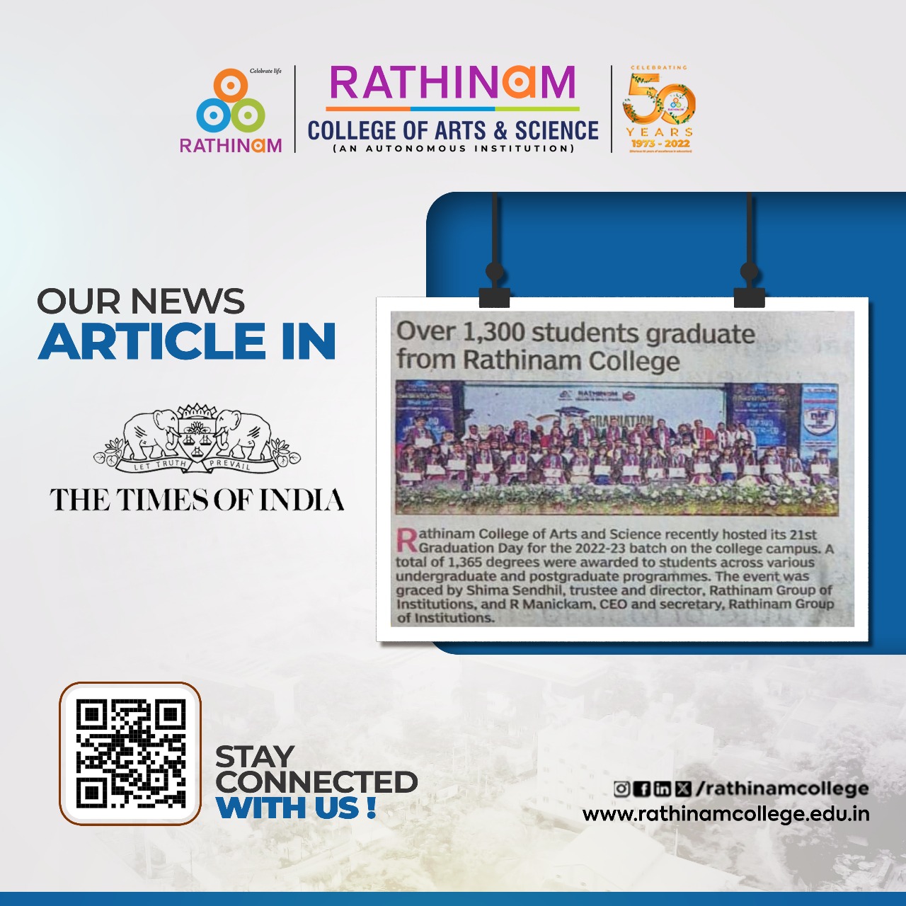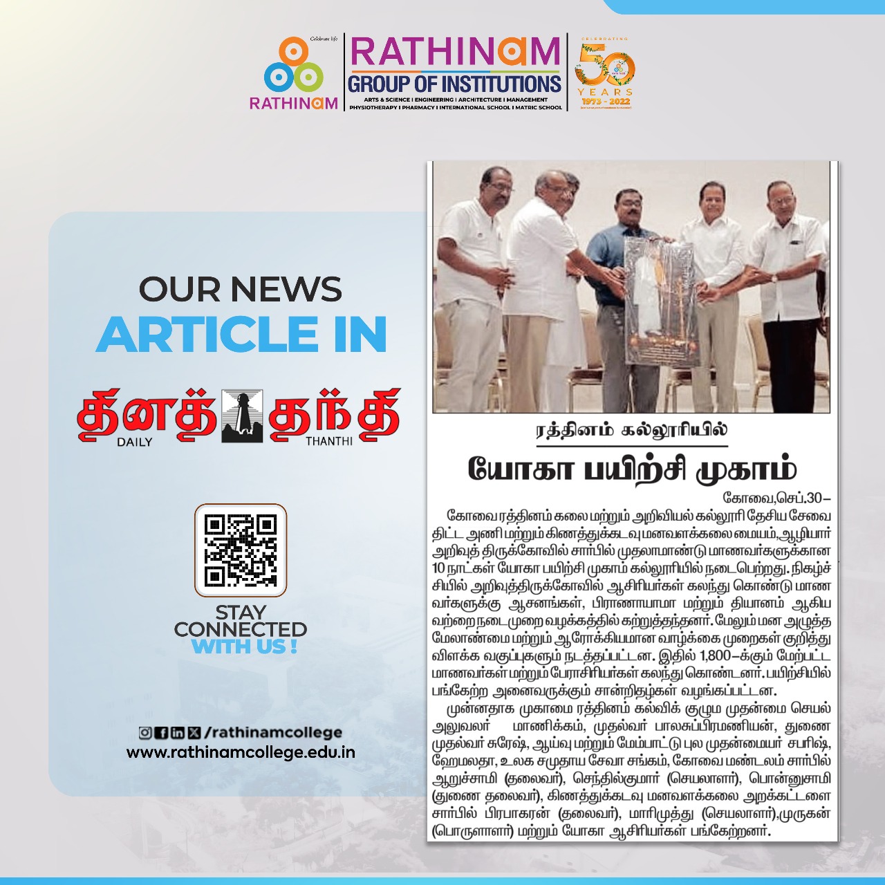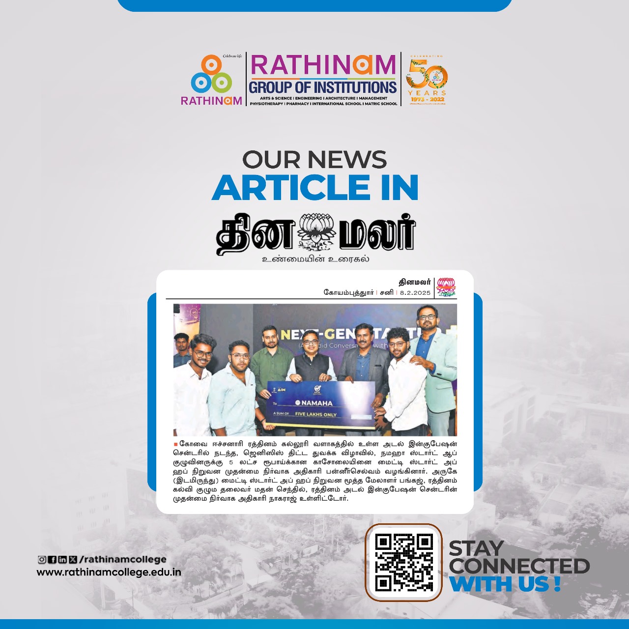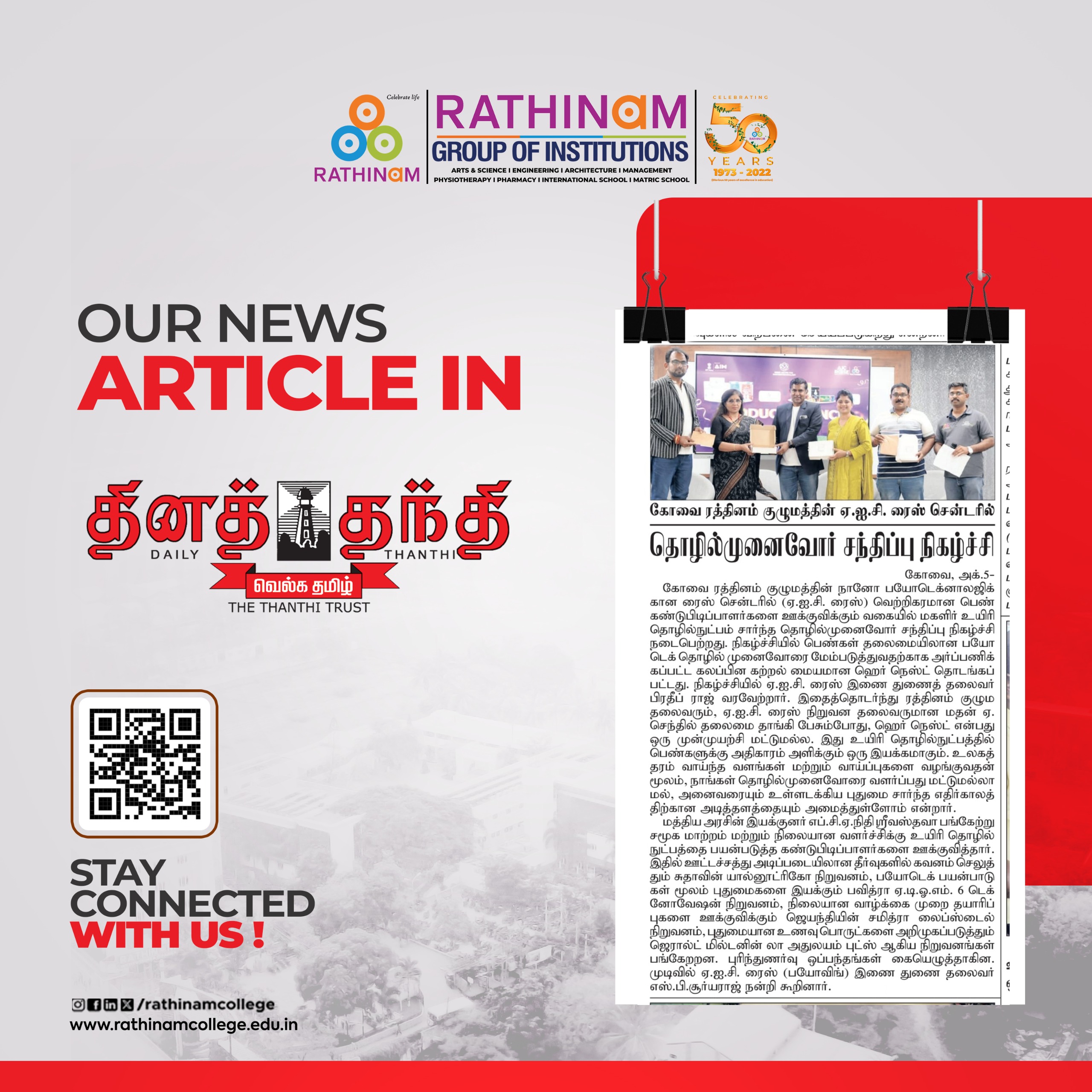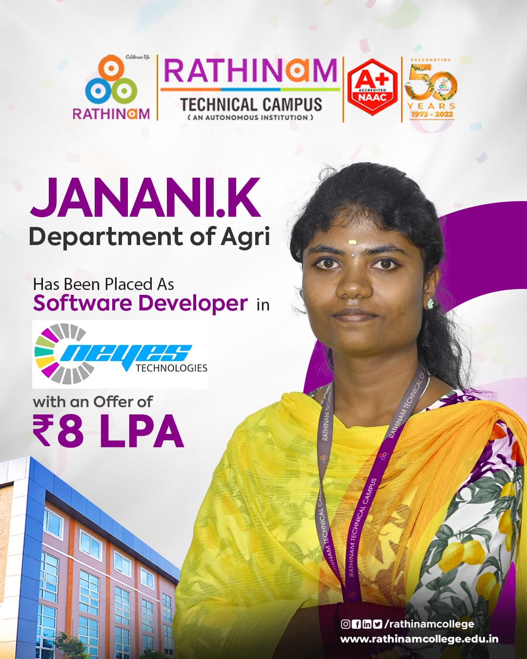 - NAAC A++ grade – 3.60 Score – Rathinam College of Arts and Science