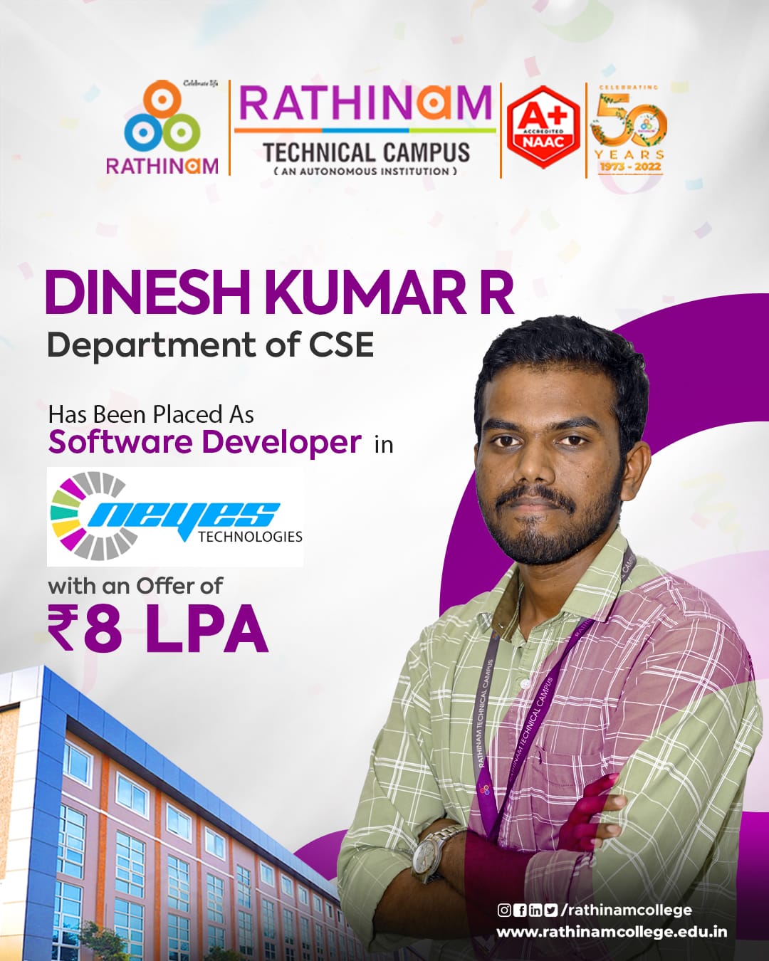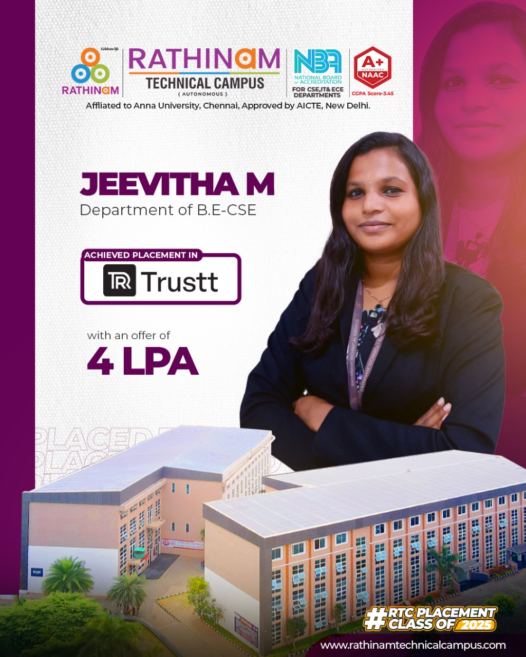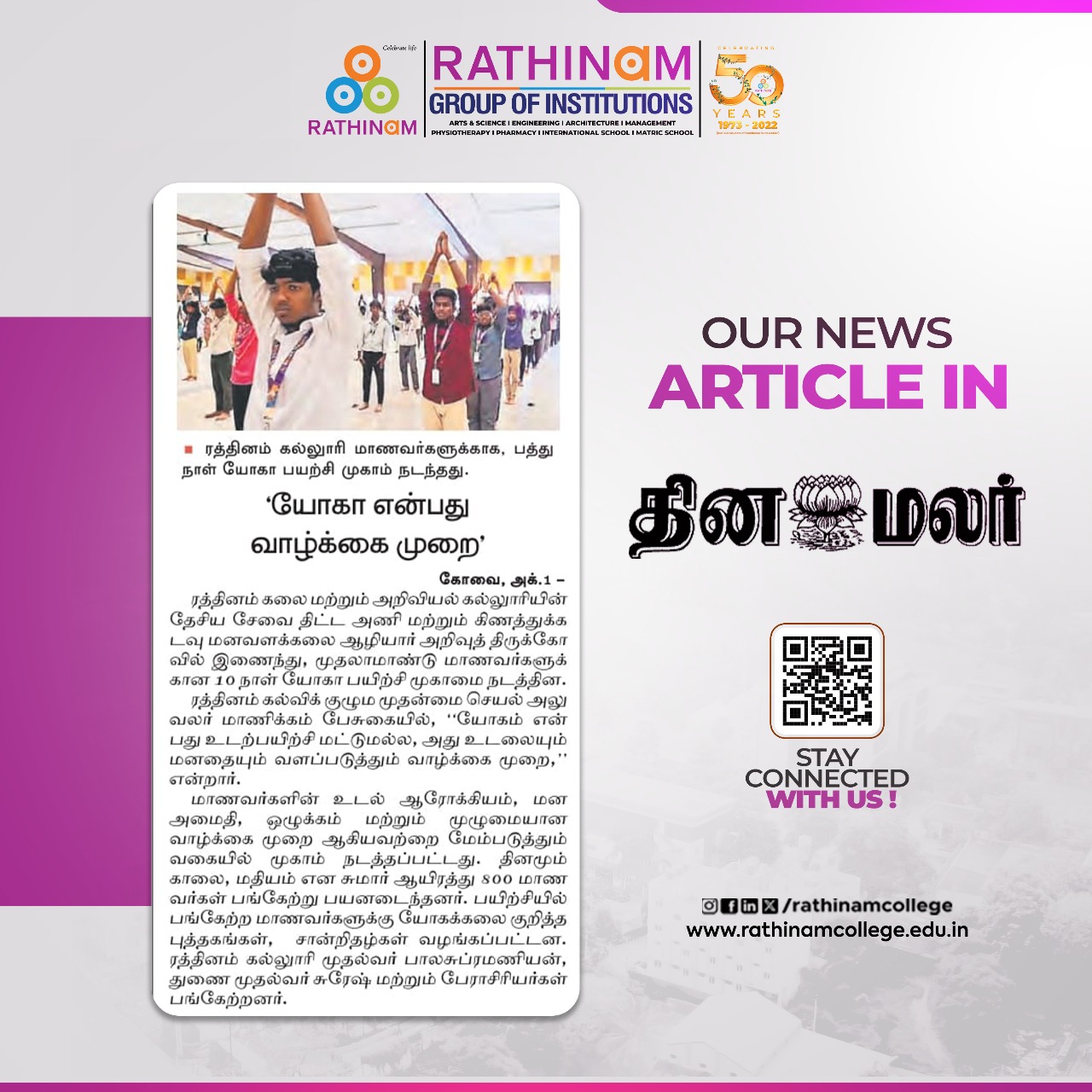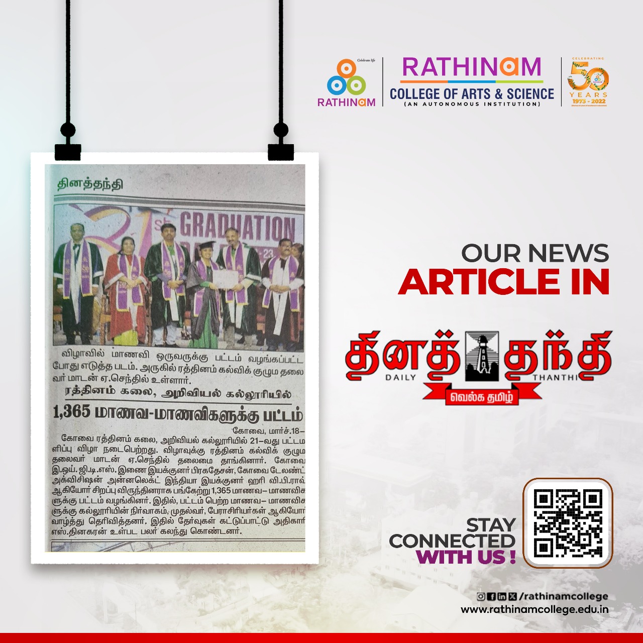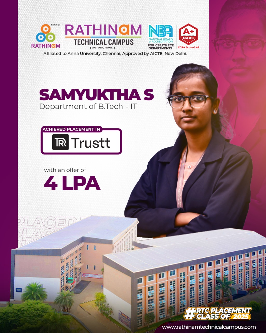 - NAAC A++ grade – 3.60 Score – Rathinam College of Arts and Science