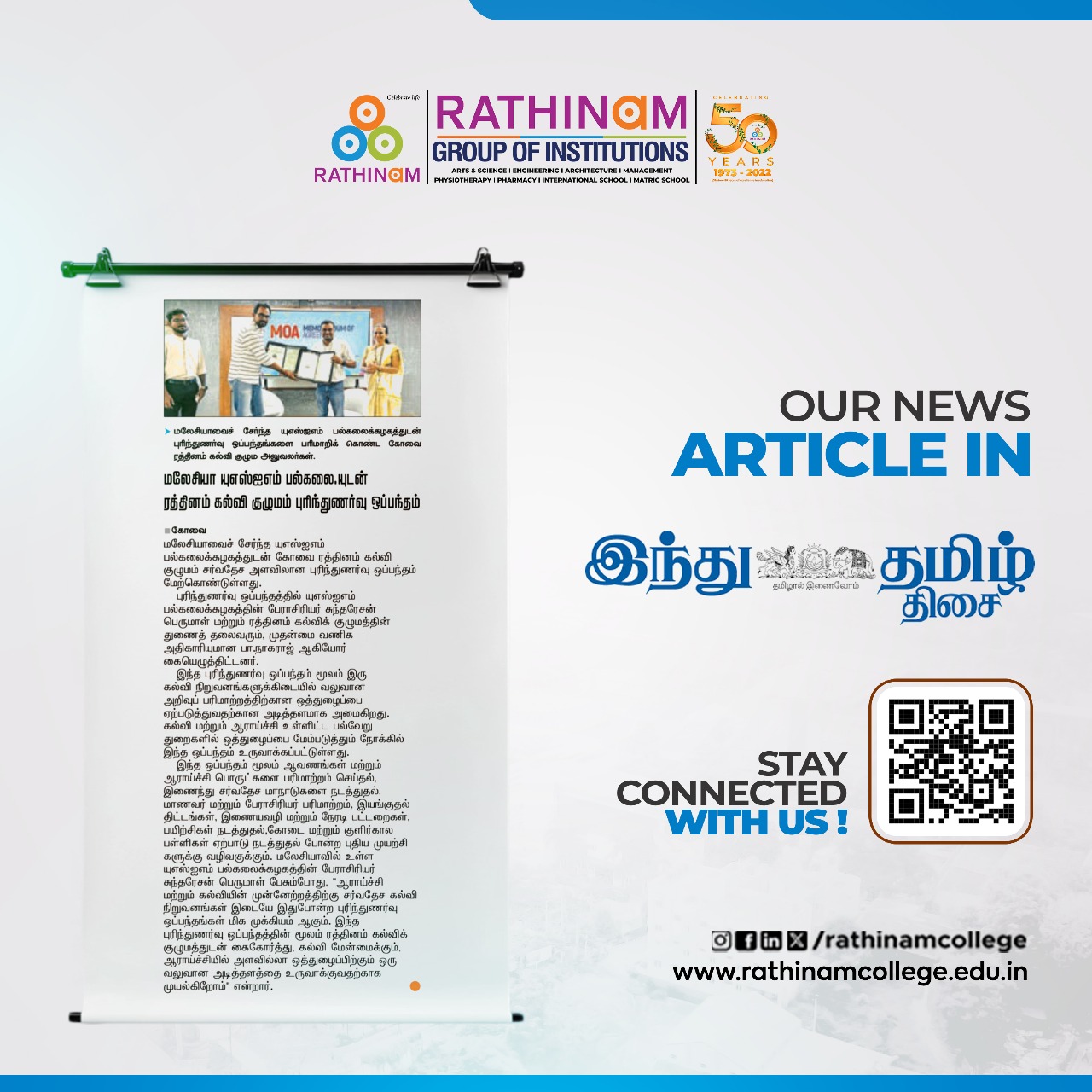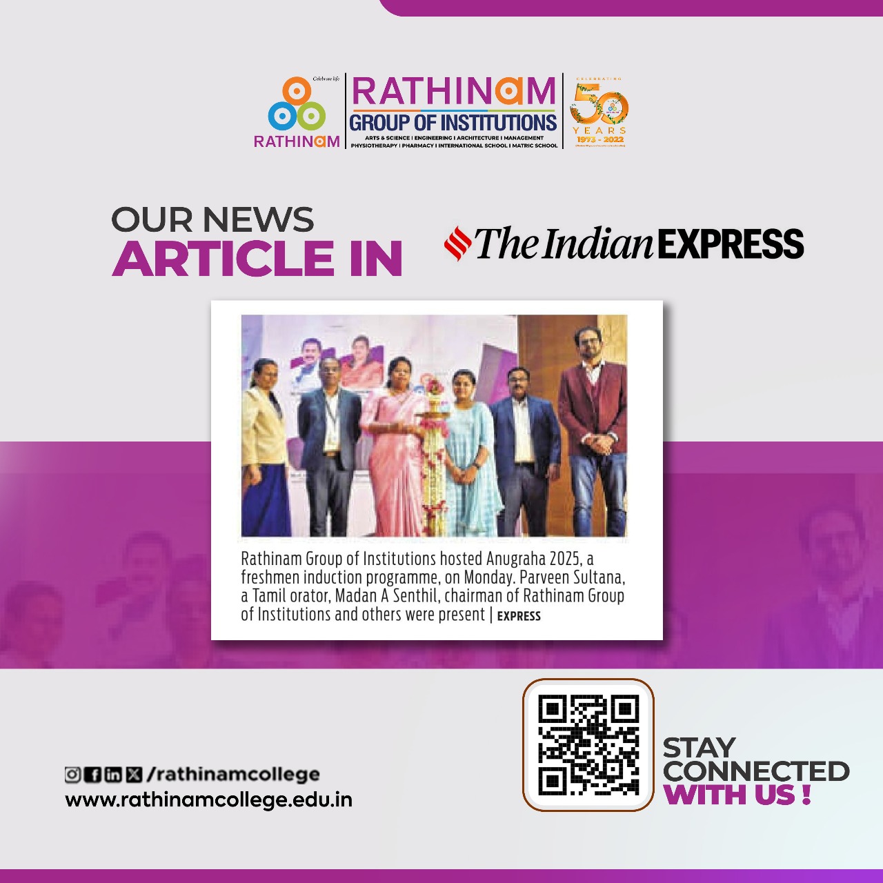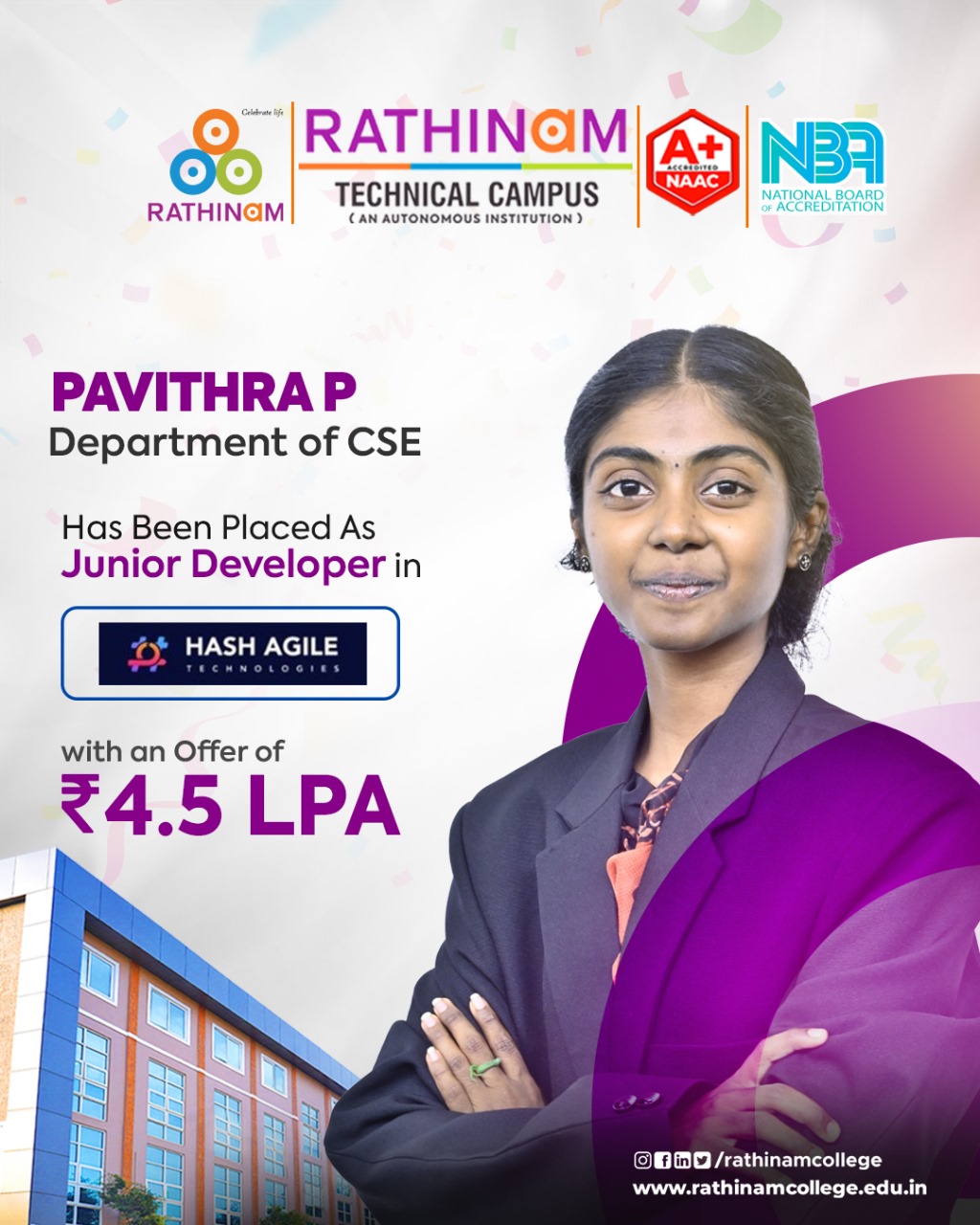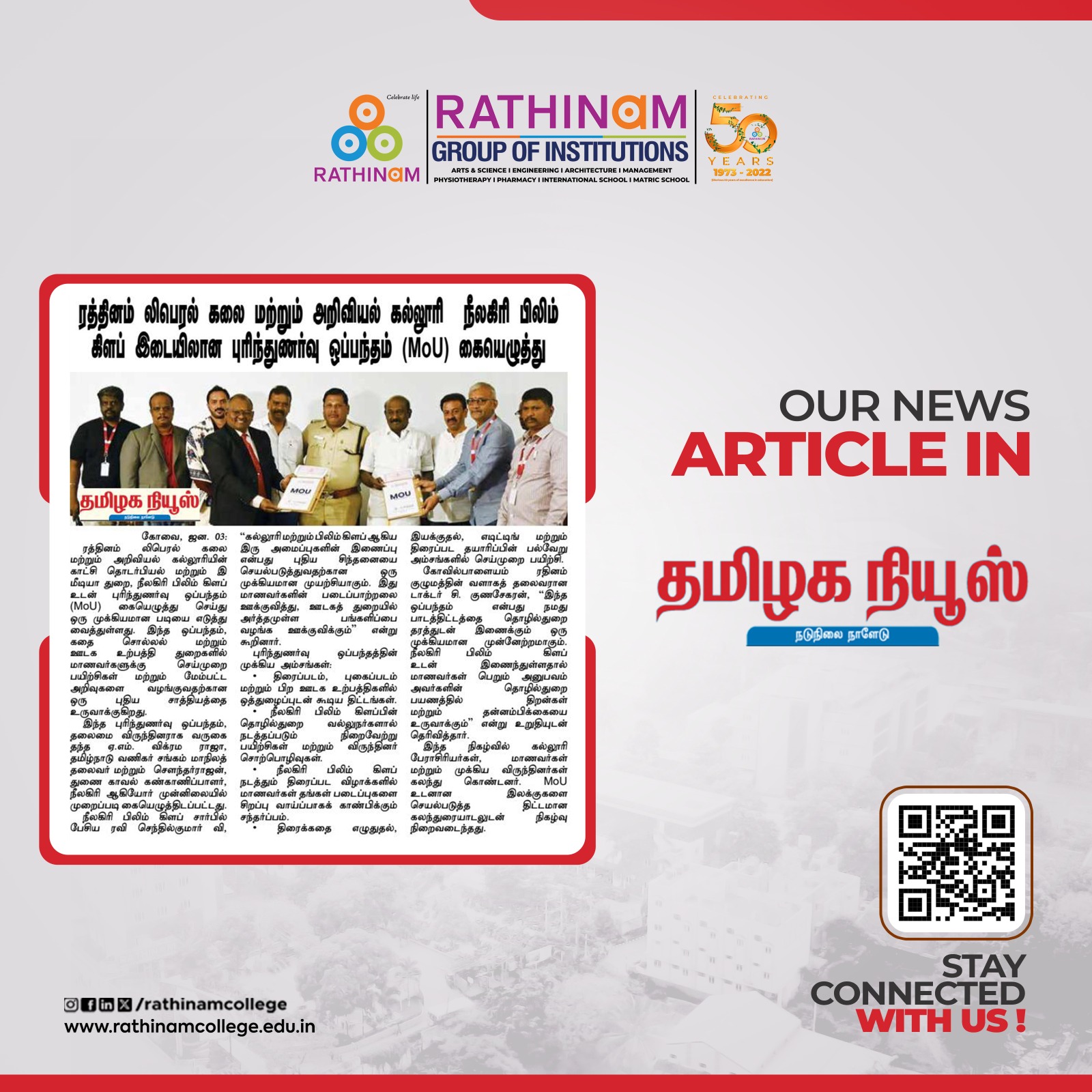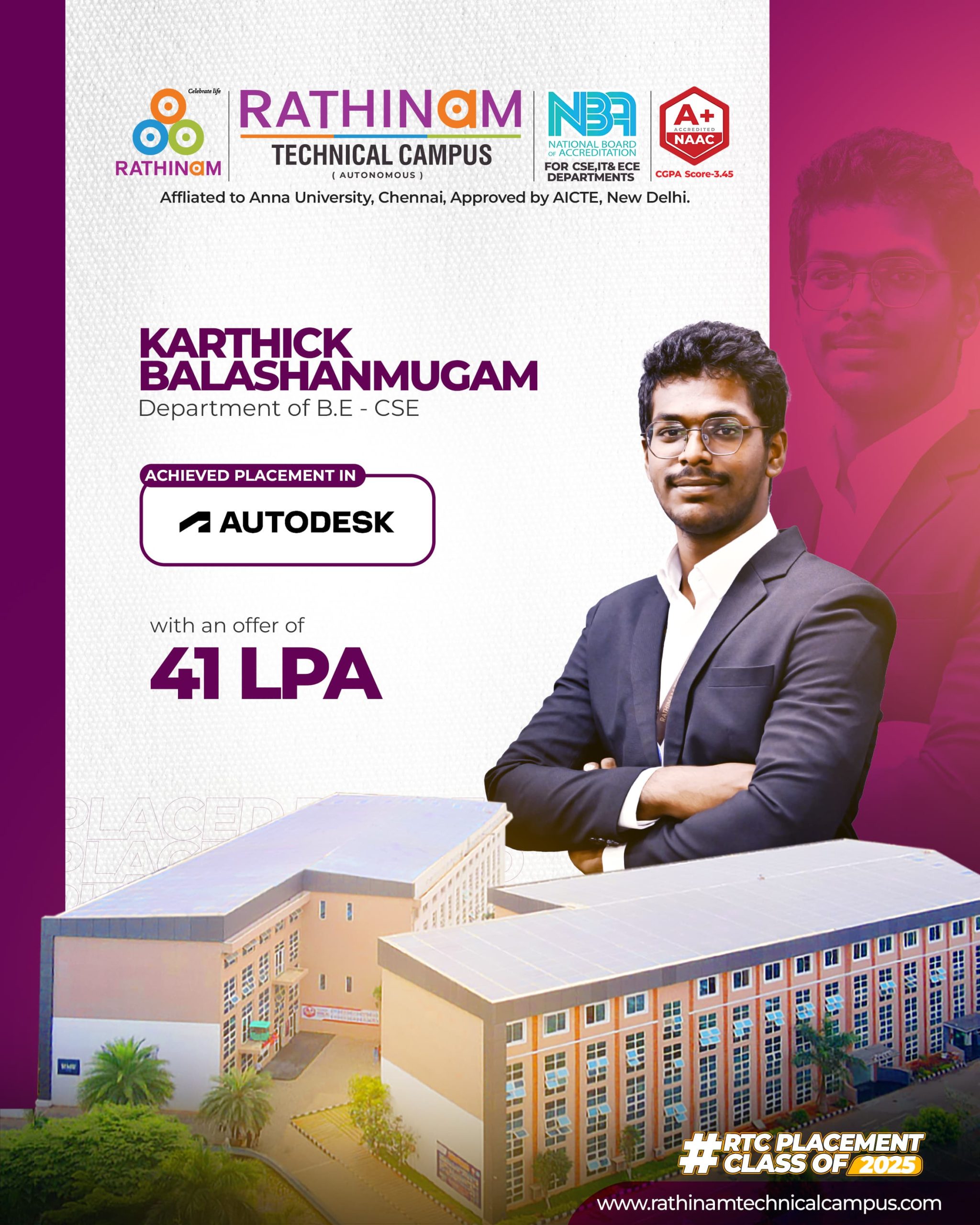 - NAAC A++ grade – 3.60 Score – Rathinam College of Arts and Science