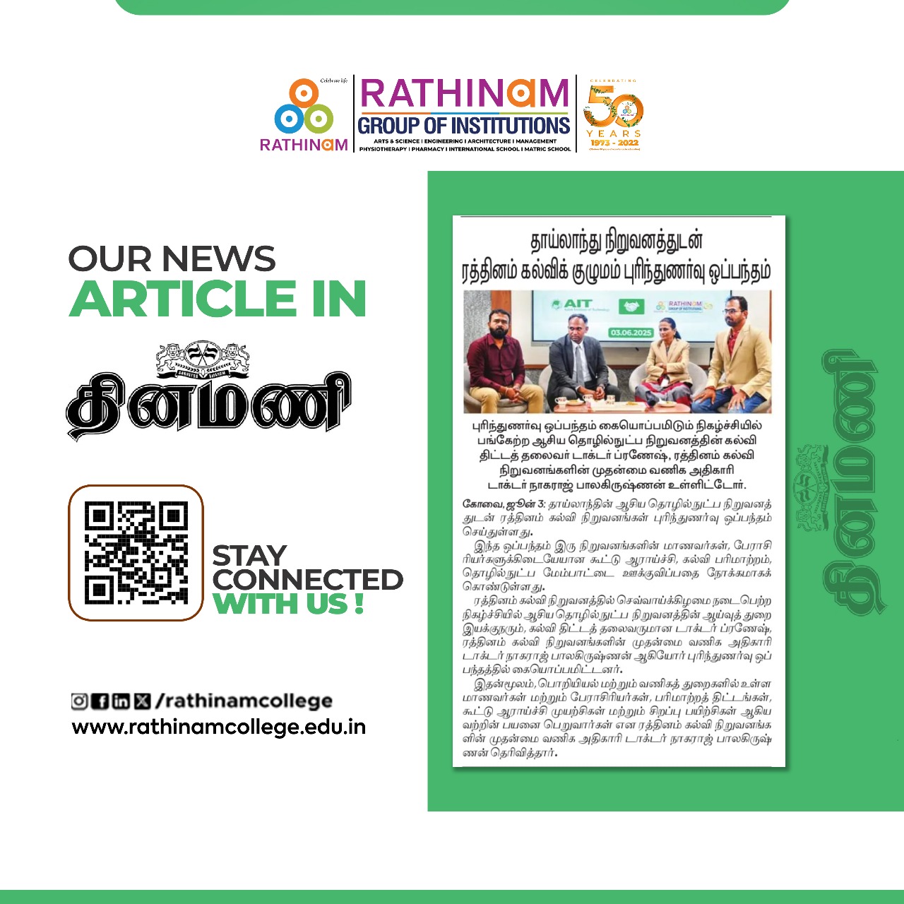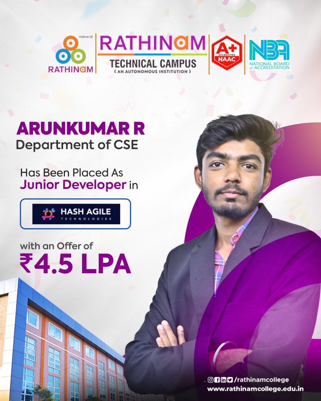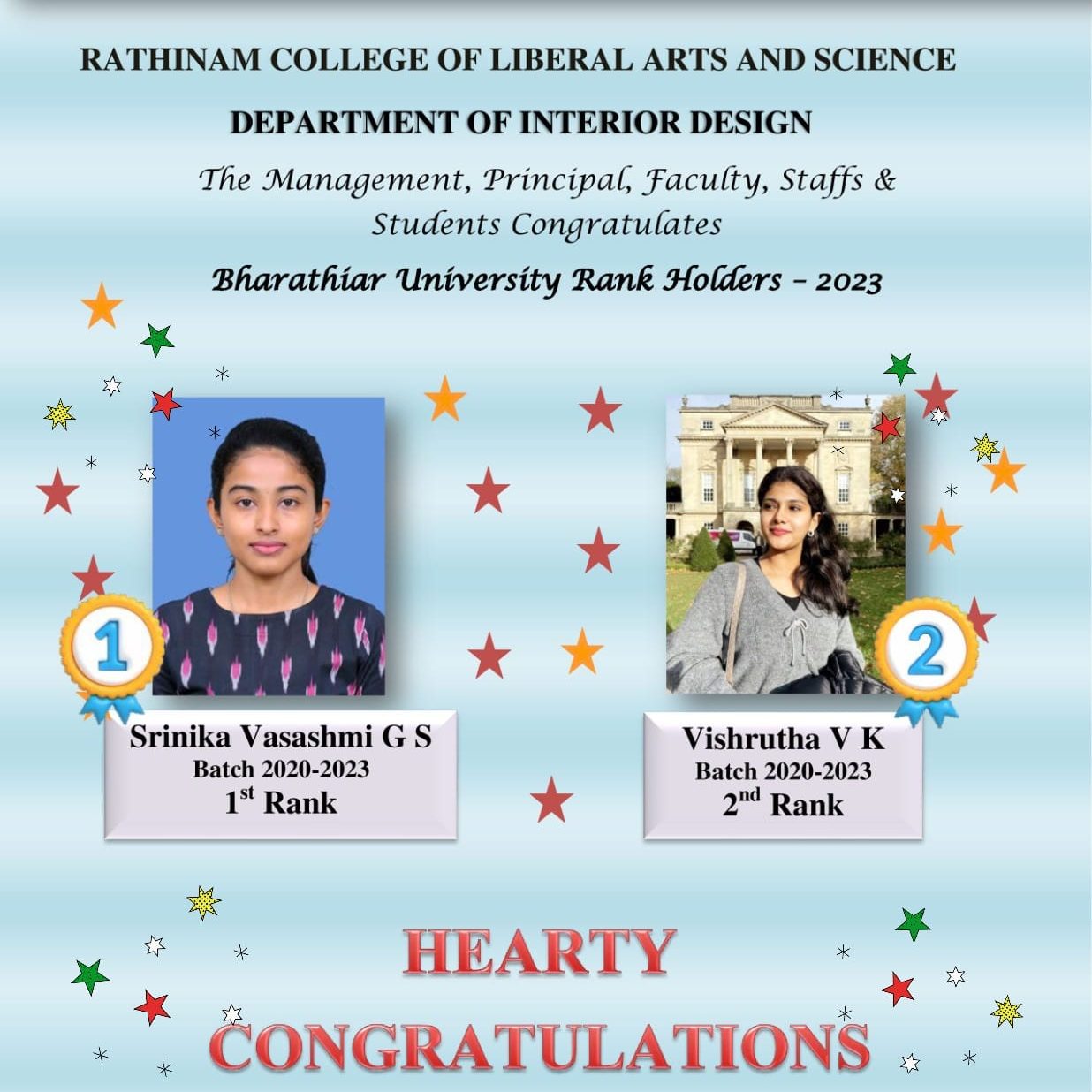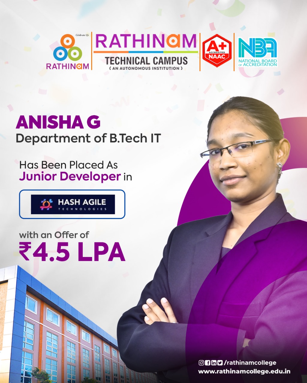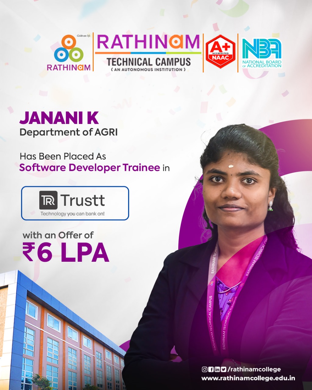 - NAAC A++ grade – 3.60 Score – Rathinam College of Arts and Science