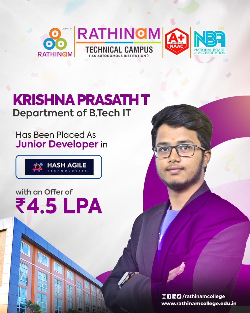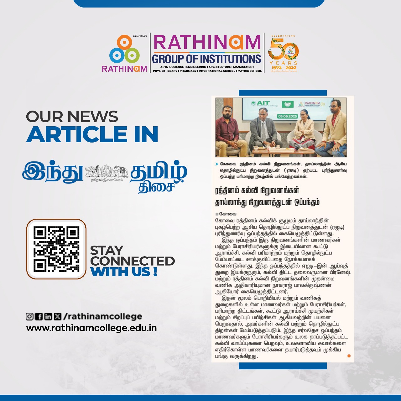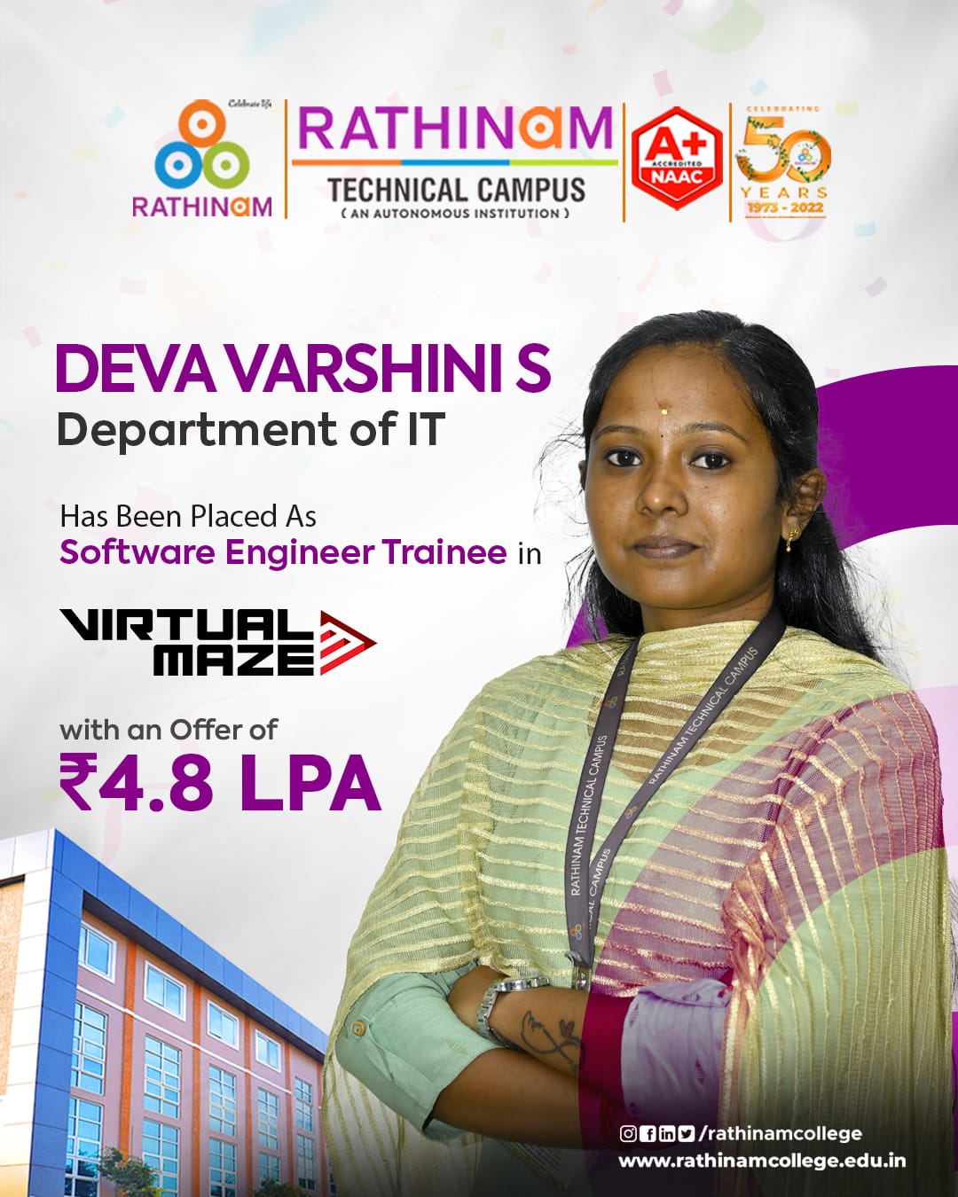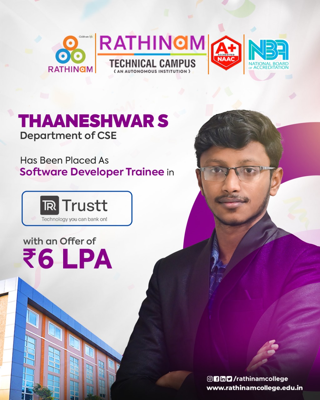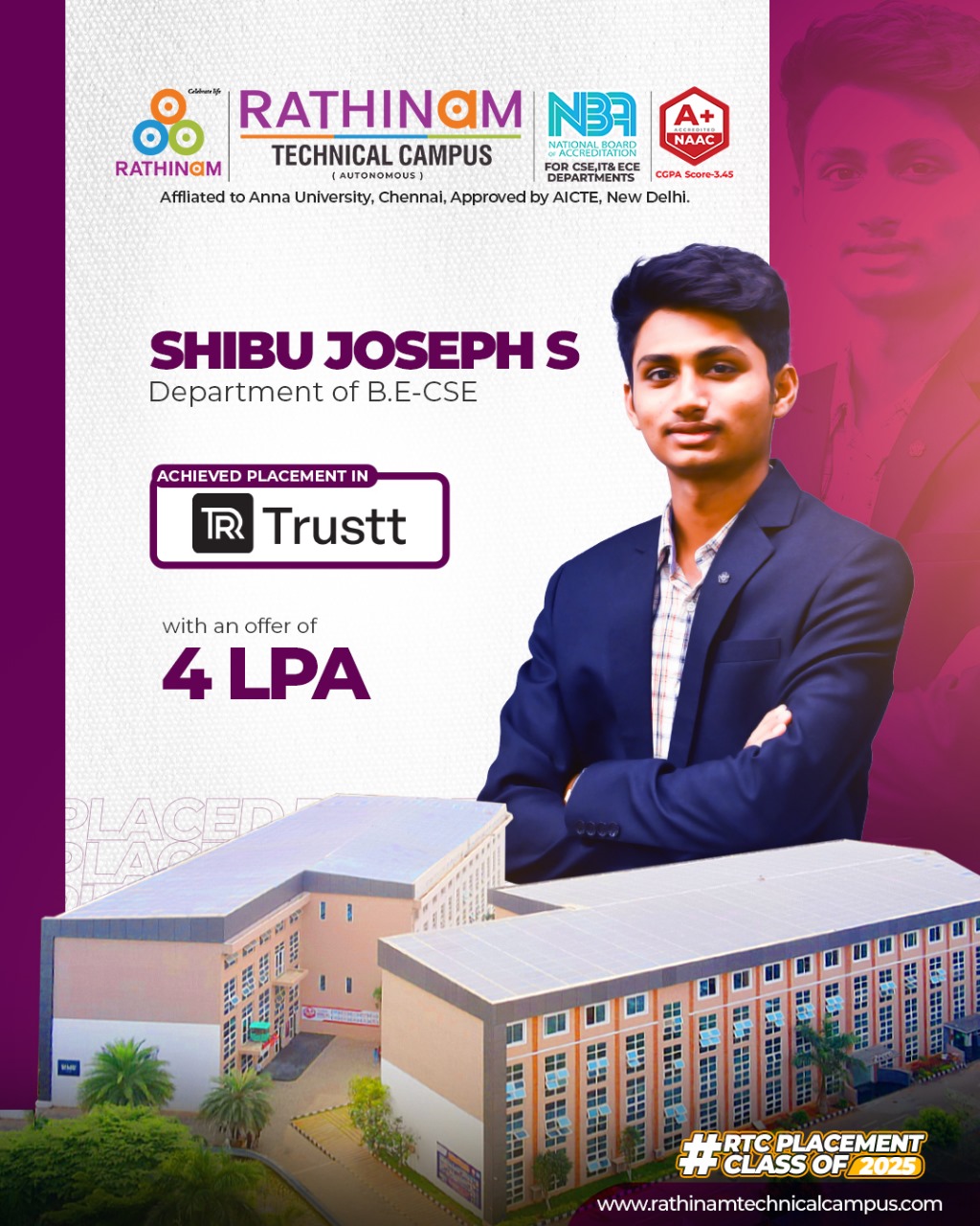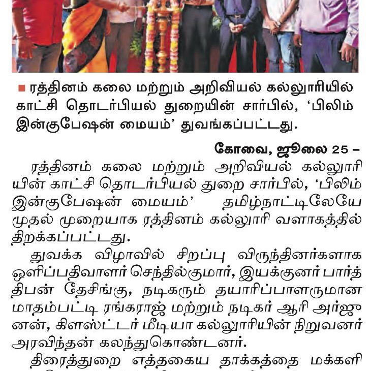- NAAC A++ grade – 3.60 Score – Rathinam College of Arts and Science