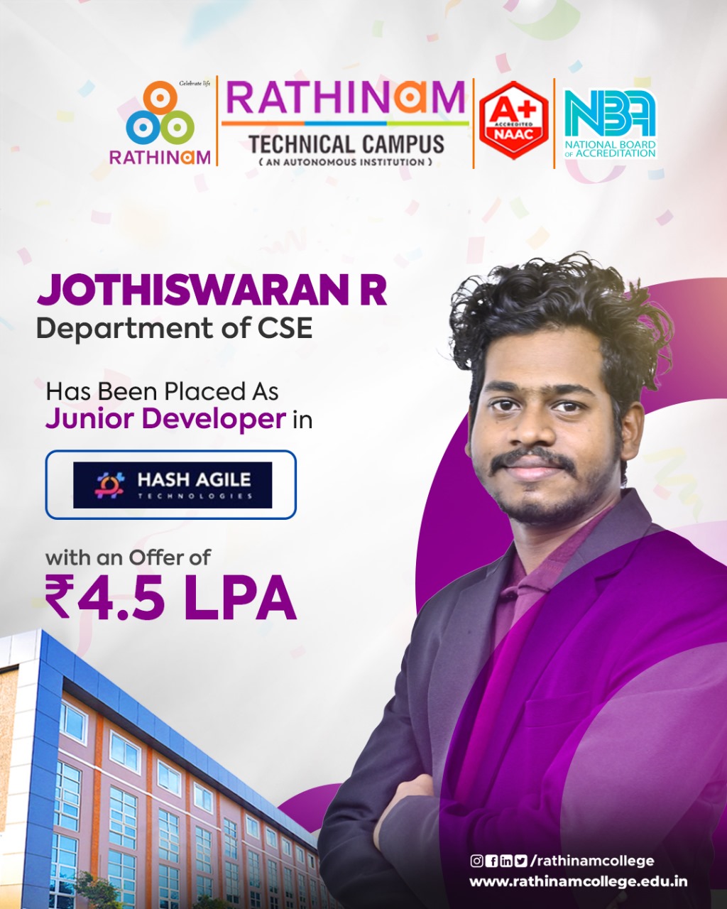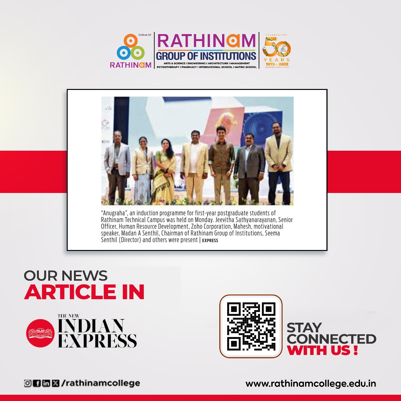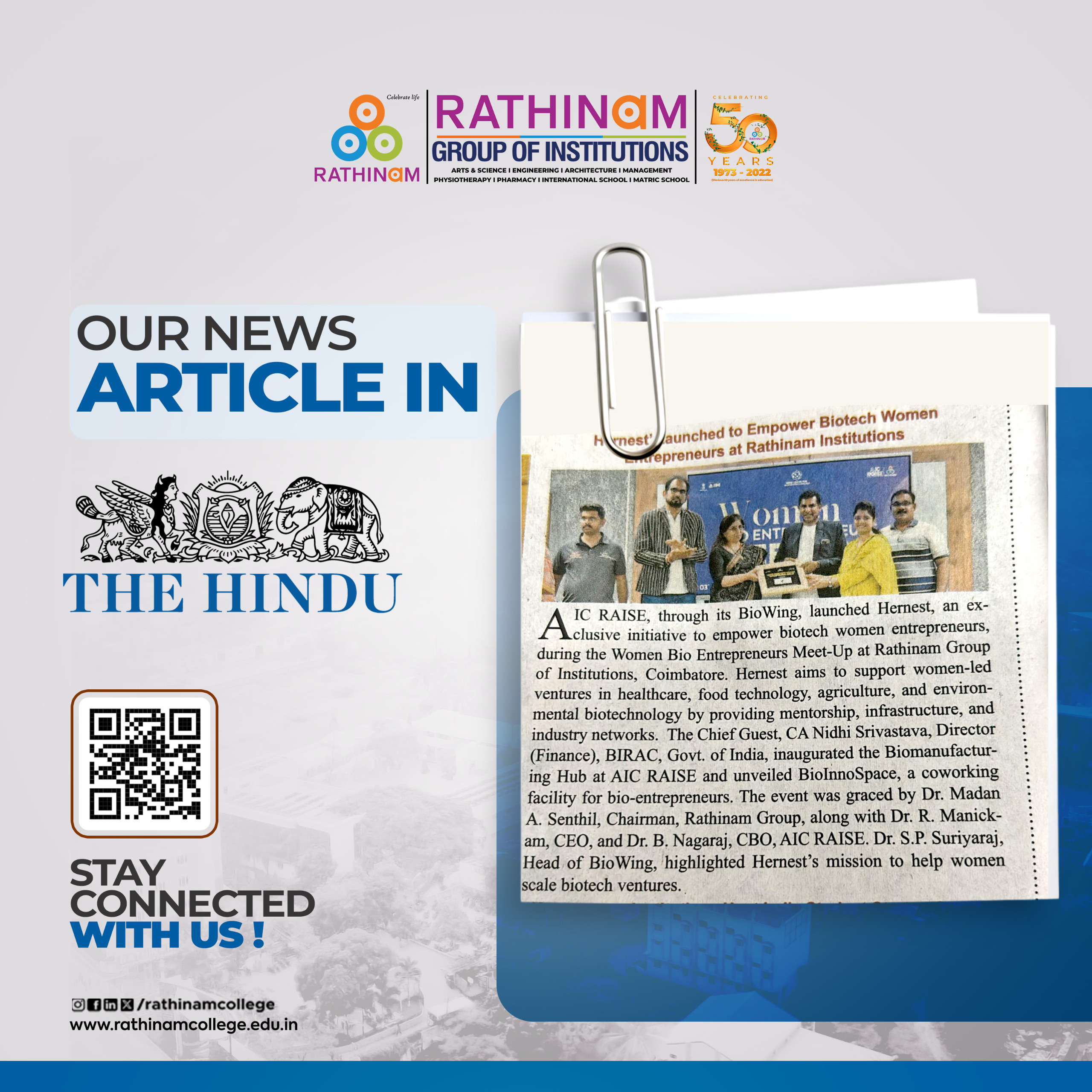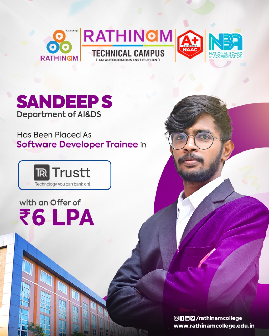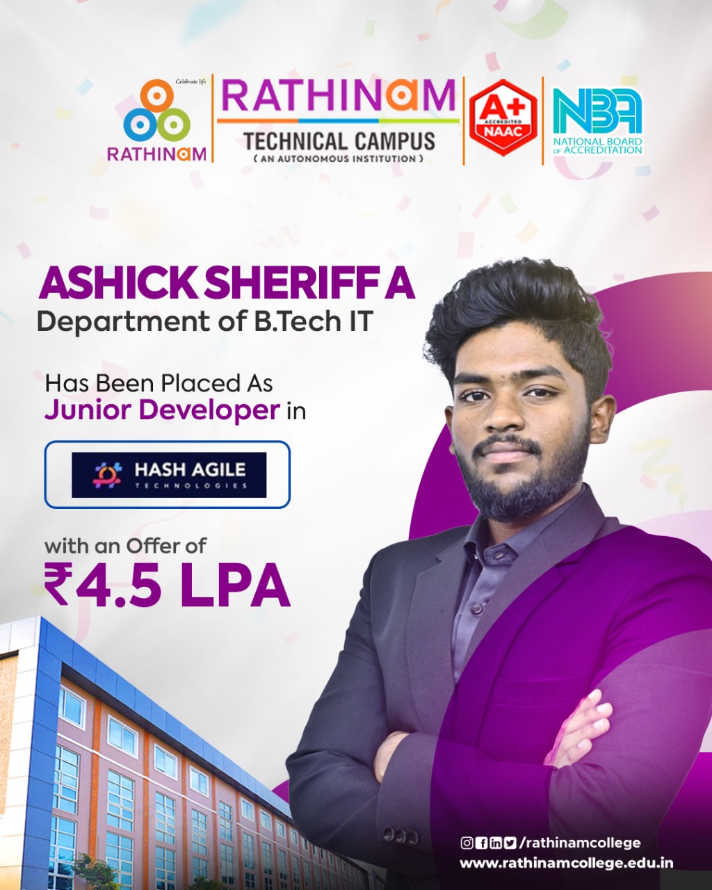 - NAAC A++ grade – 3.60 Score – Rathinam College of Arts and Science