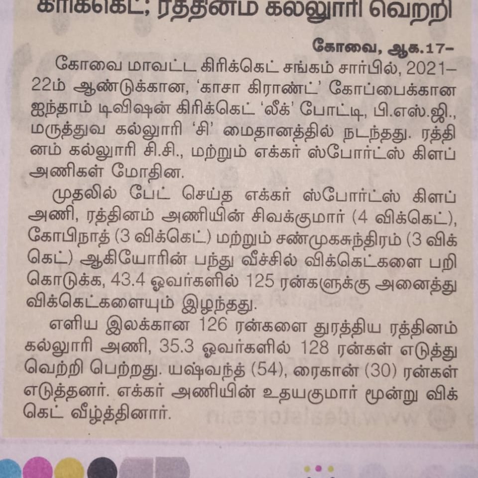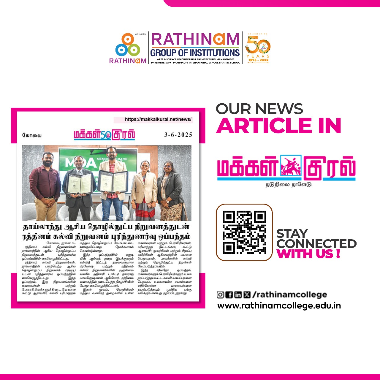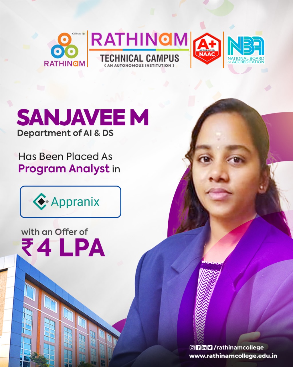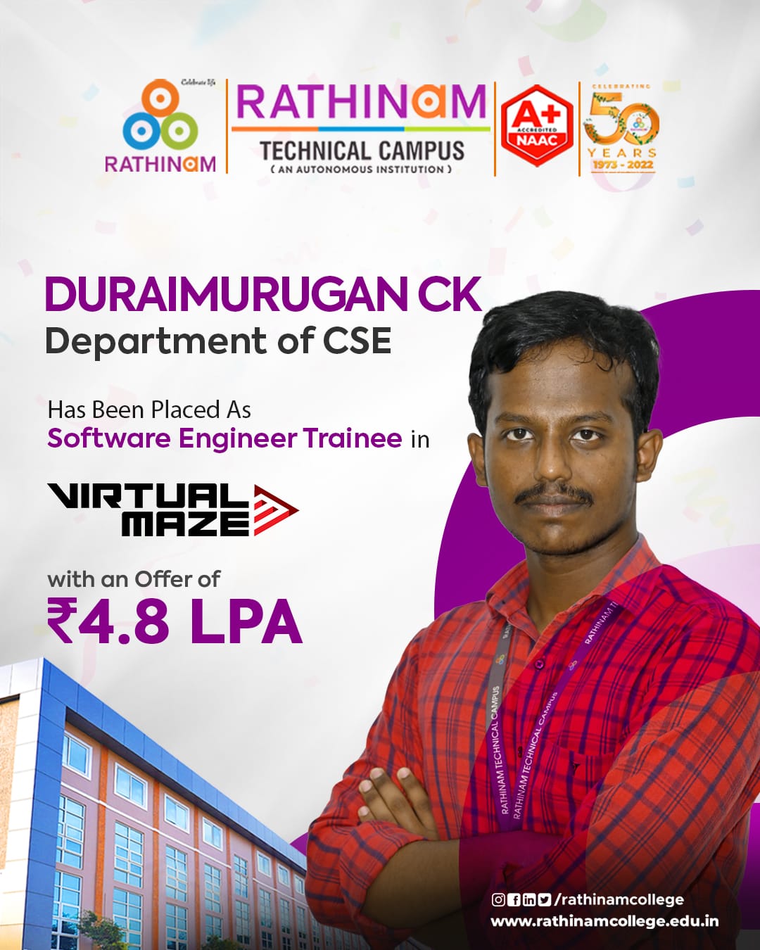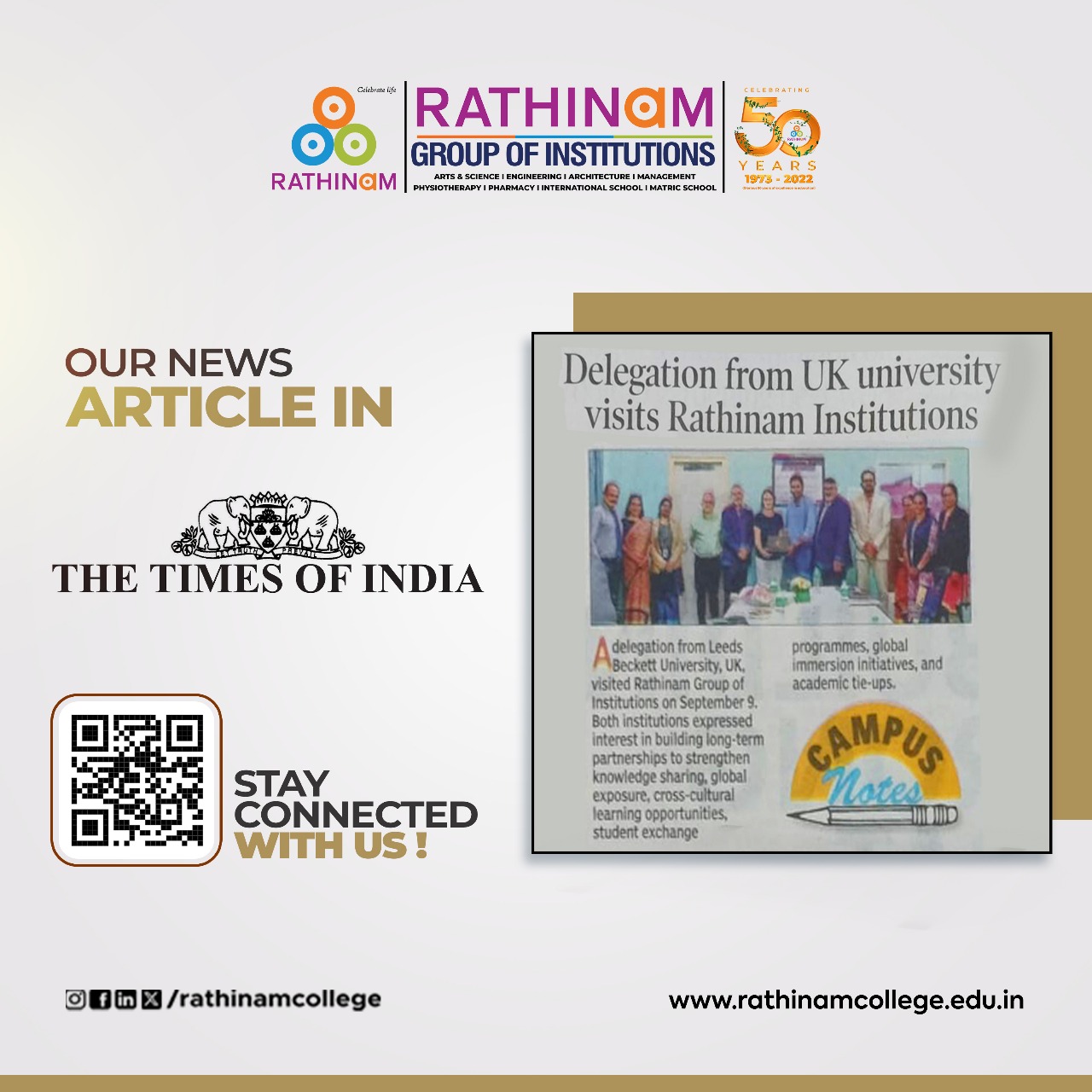 - NAAC A++ grade – 3.60 Score – Rathinam College of Arts and Science