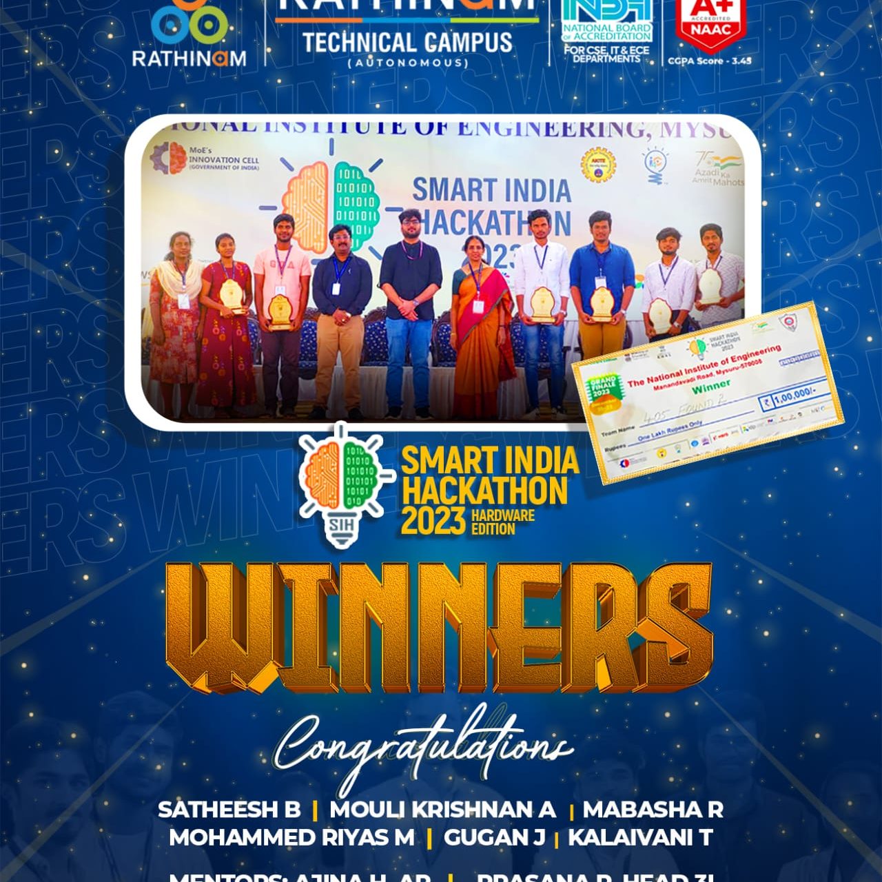 - NAAC A+ grade – Scored 3.45 in the first cycle