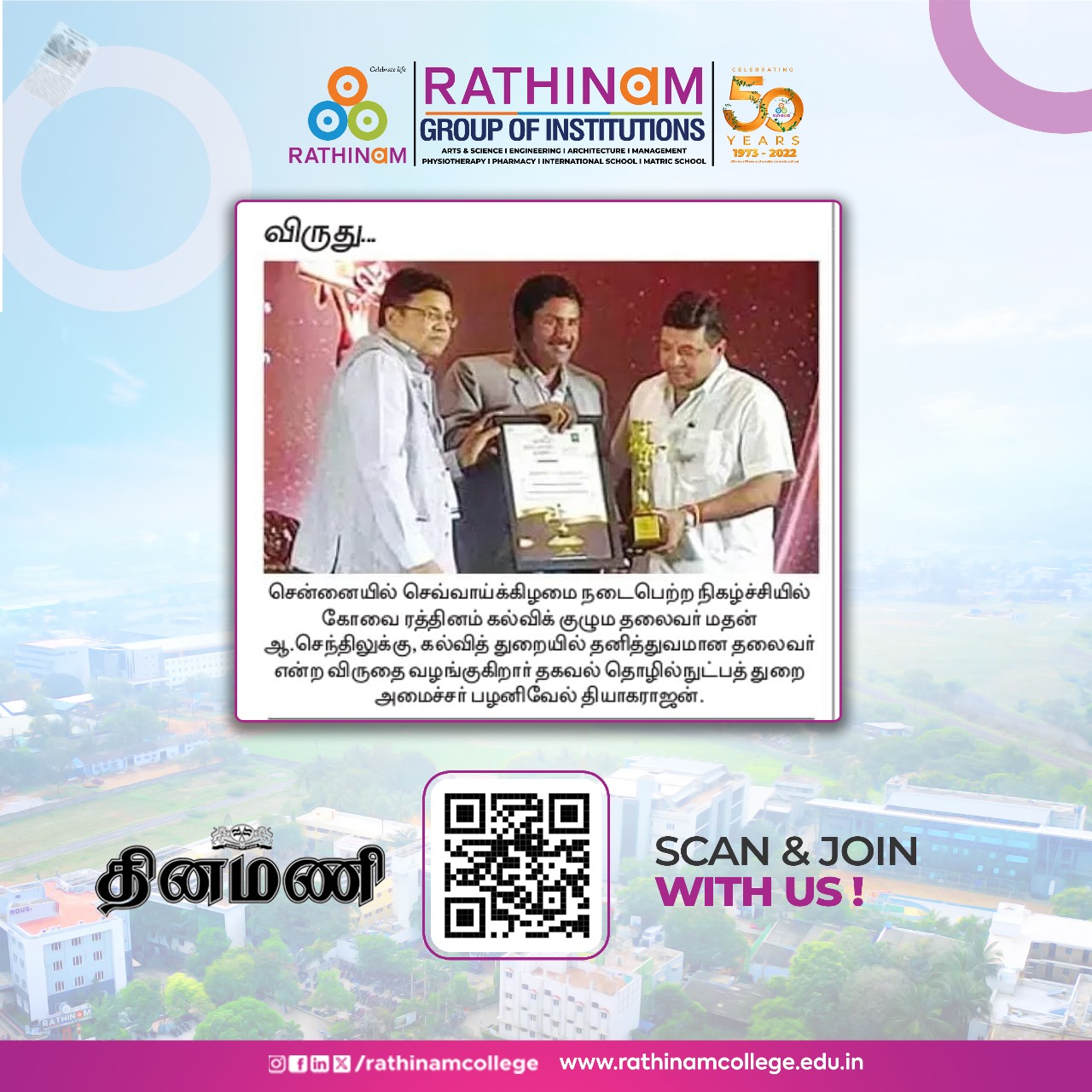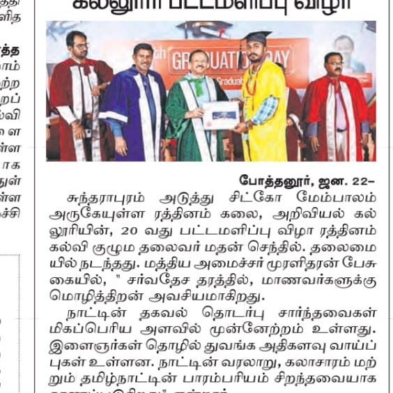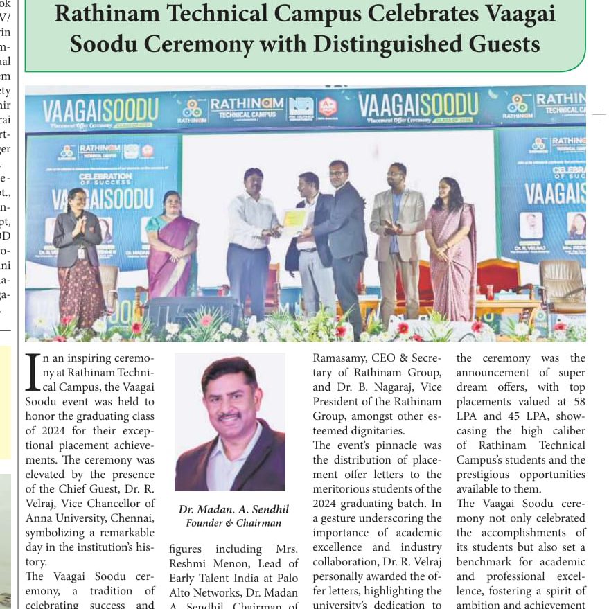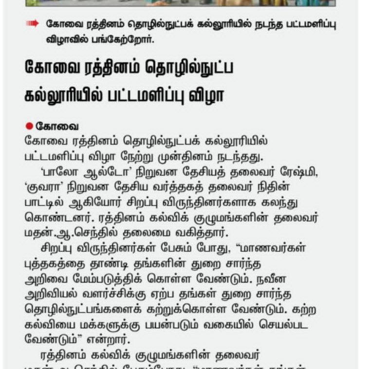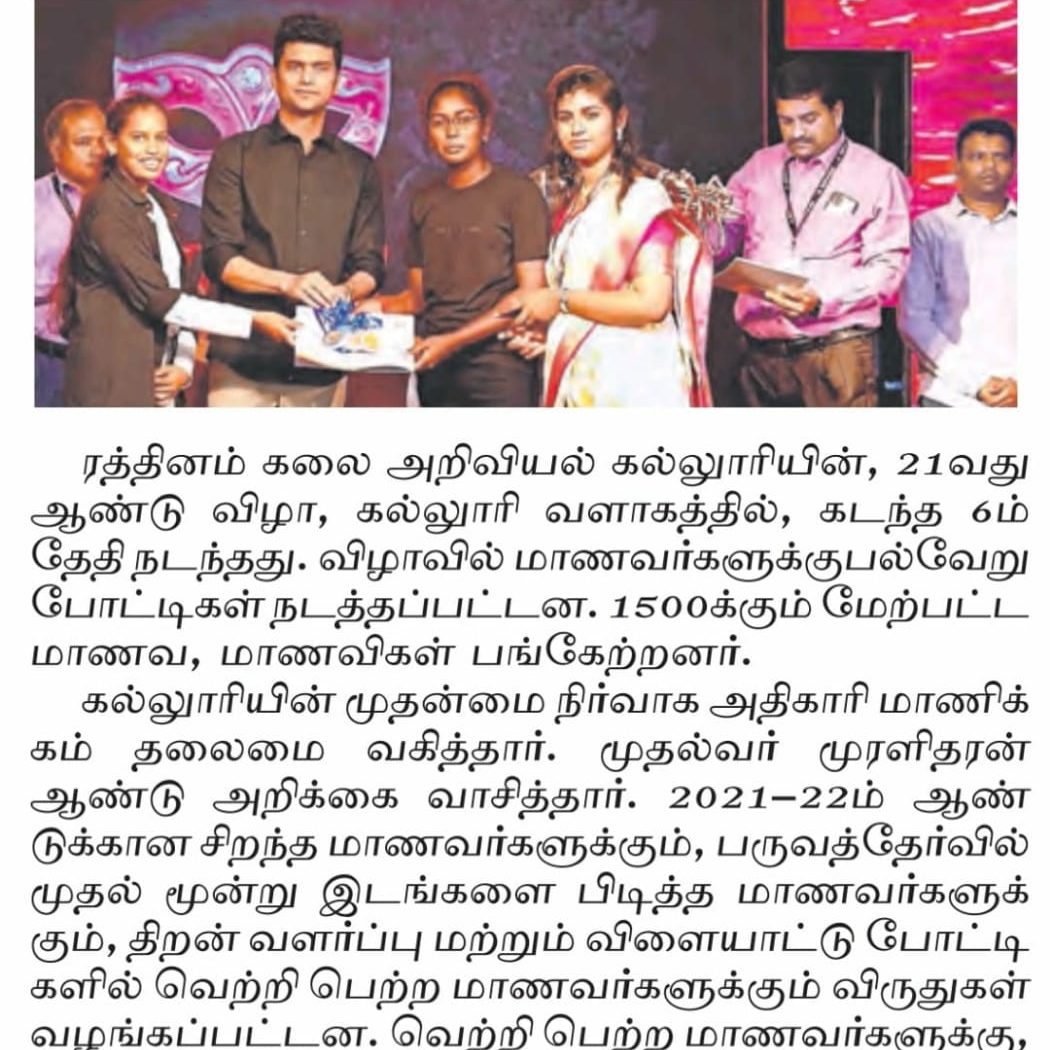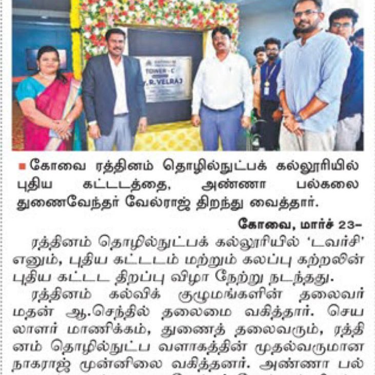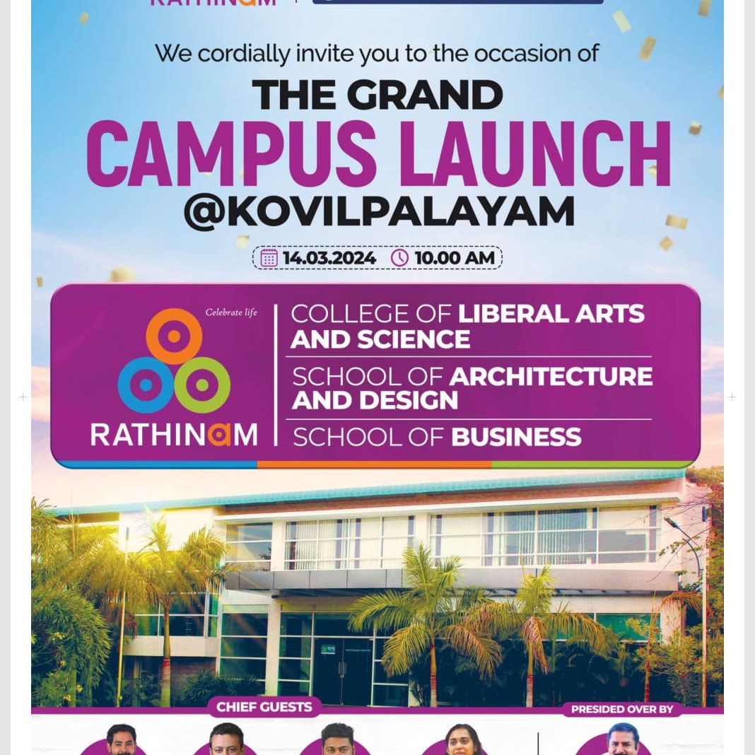 Rathinam College is one of the Best Colleges in Coimbatore, Tamilnadu. As a Top College in Coimbatore, We offer Arts & Science, Engineering, Management, Architecture & Physiotherapy courses. Rathinam began its journey more than 40 years ago with a vision to create an educational community with a global outlook. The dream kick-started when K.P.M Matriculation School was established in Eachanari, Coimbatore.