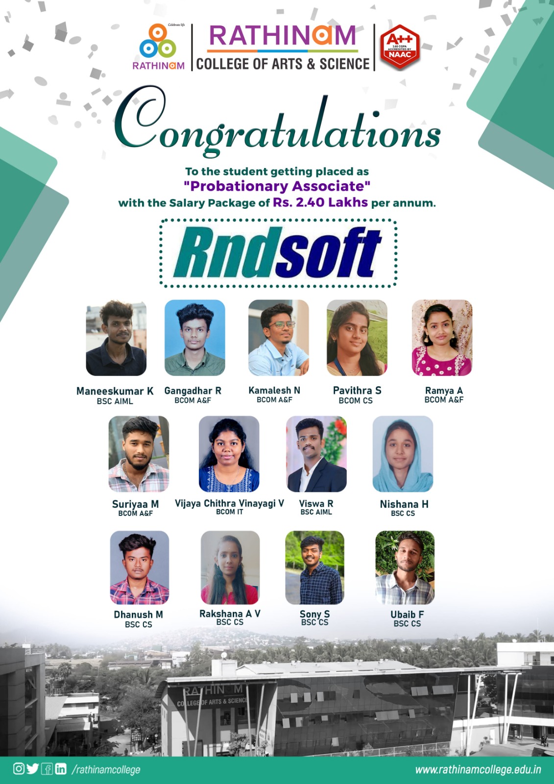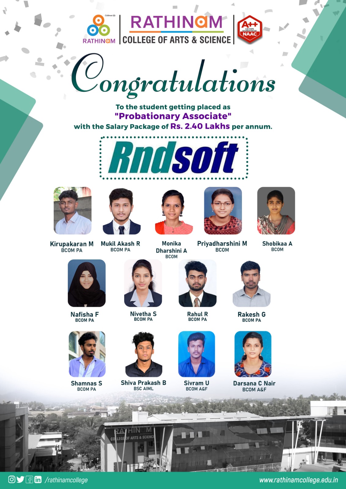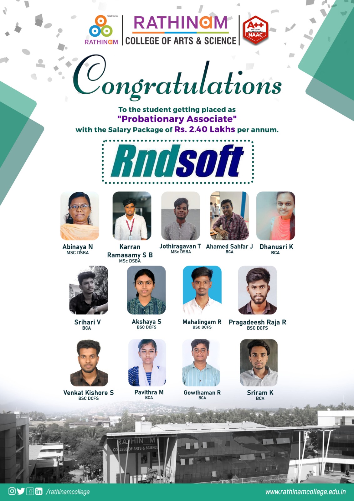 RATHINAMITES - PLACEMENTS STATISTICS