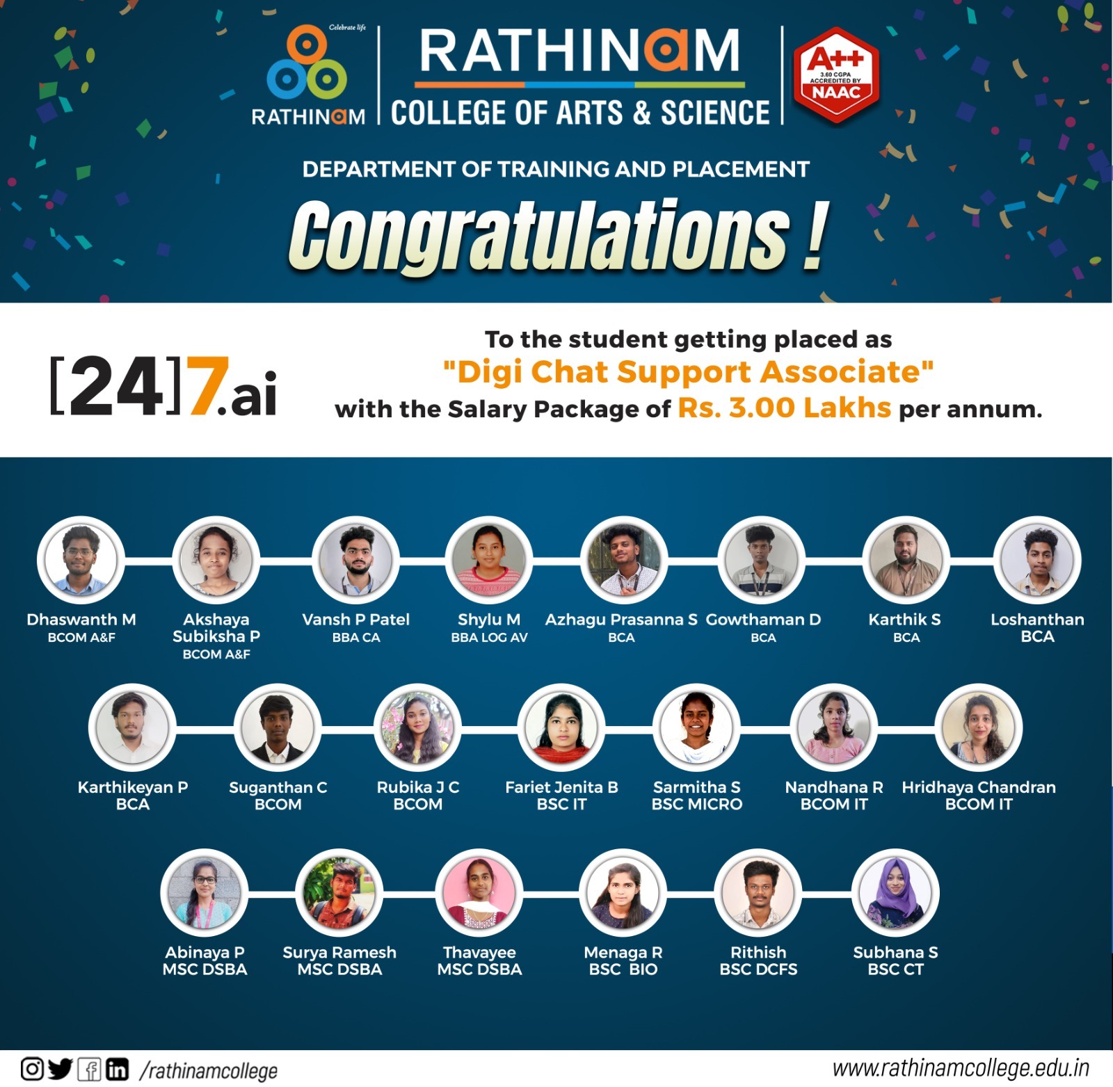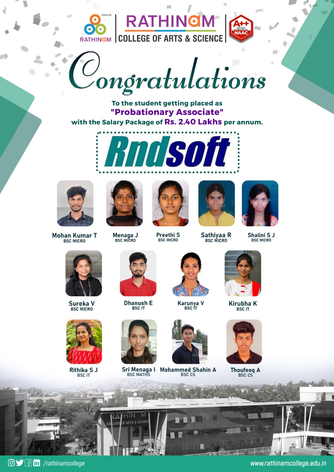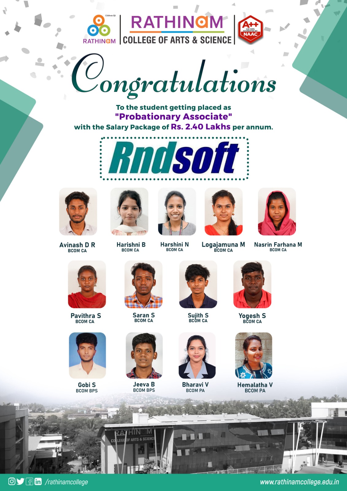 RATHINAMITES - PLACEMENTS STATISTICS