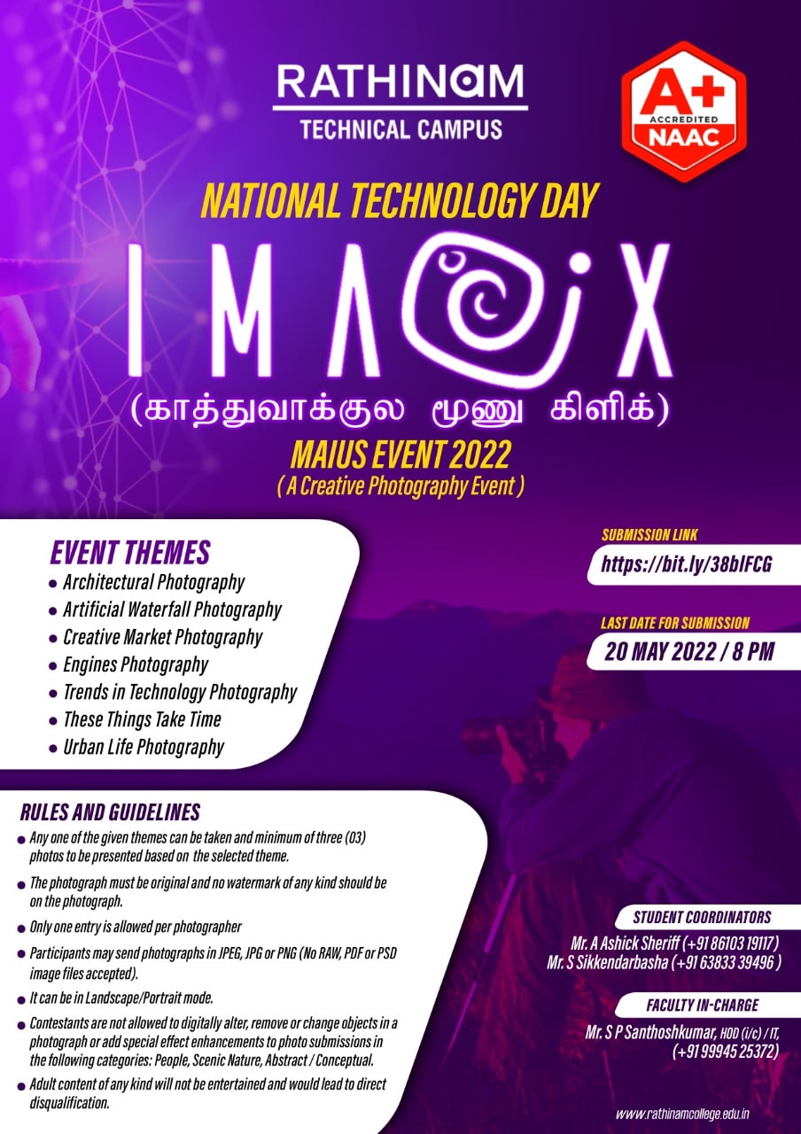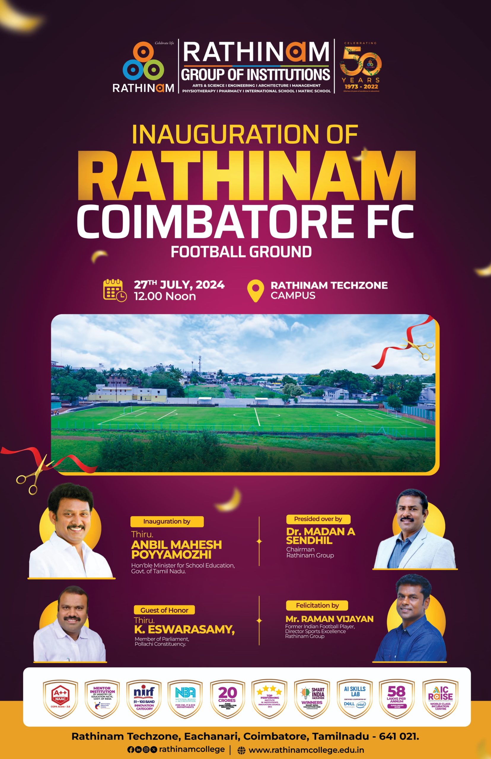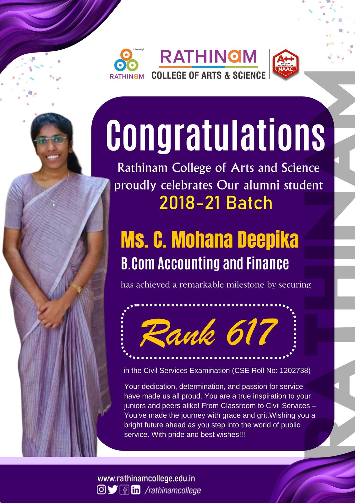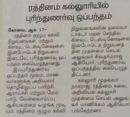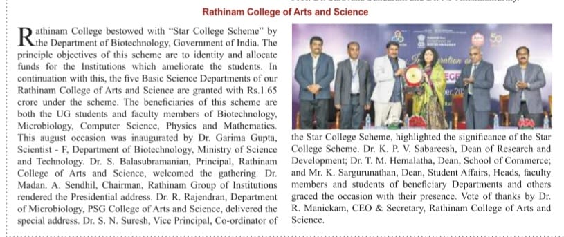 - NAAC A++ grade – 3.60 Score – Rathinam College of Arts and Science