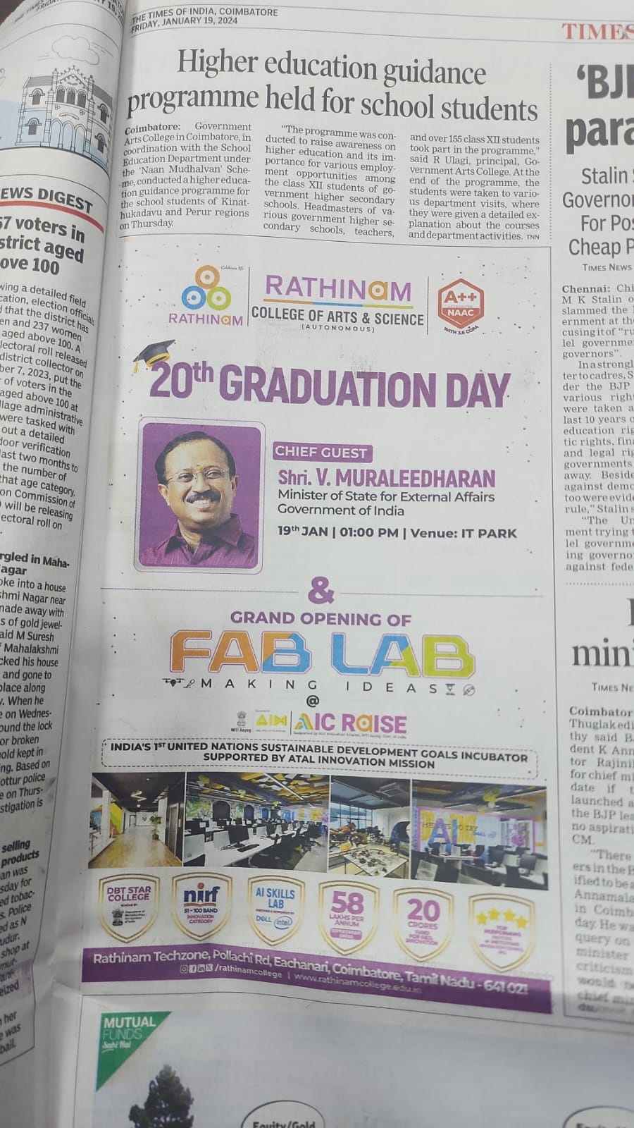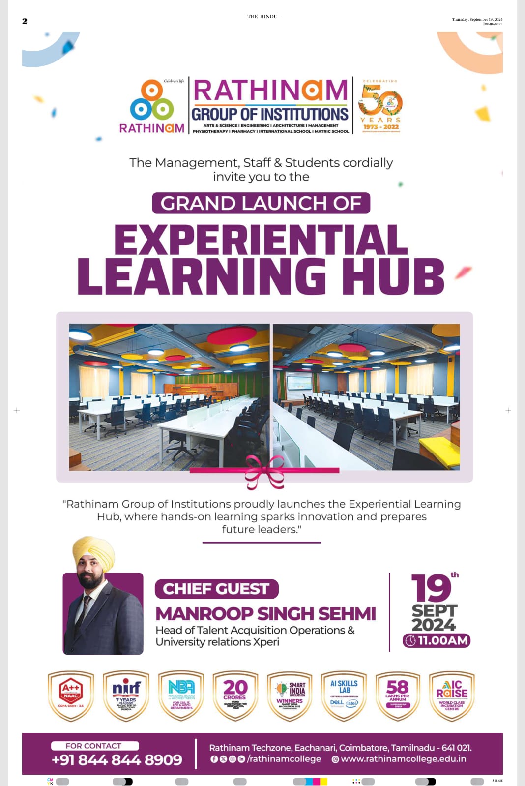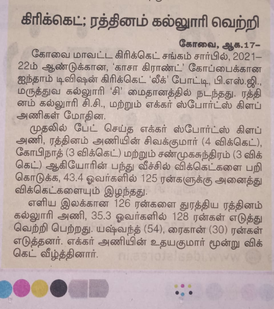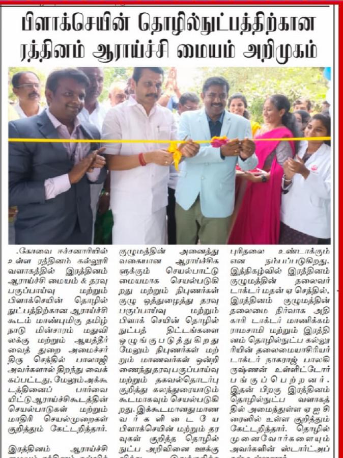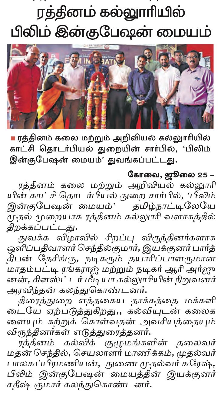 - NAAC A++ grade – 3.60 Score – Rathinam College of Arts and Science