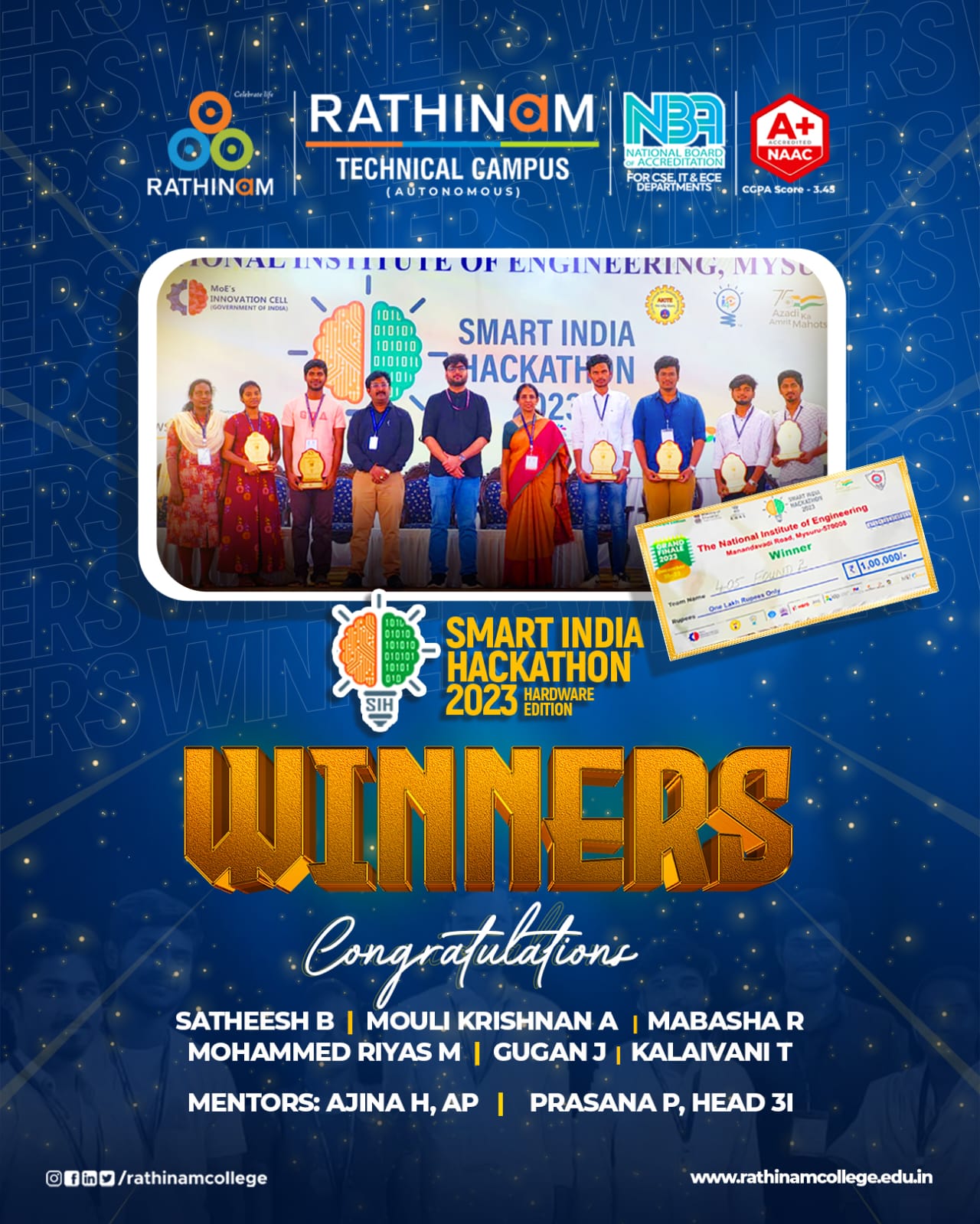 - NAAC A+ grade – Scored 3.45 in the first cycle