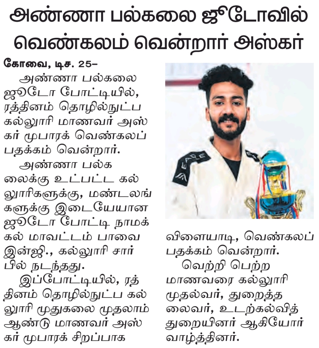 Our students never cease to amaze us! This karate star is a shining example of the talent we have at Rathinam Group of Institutions