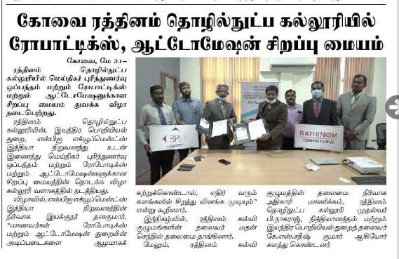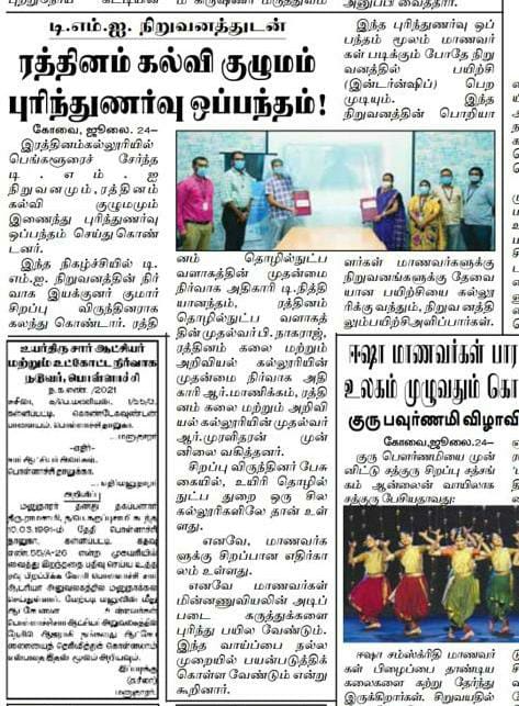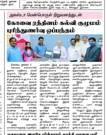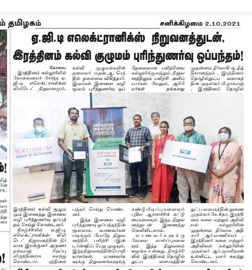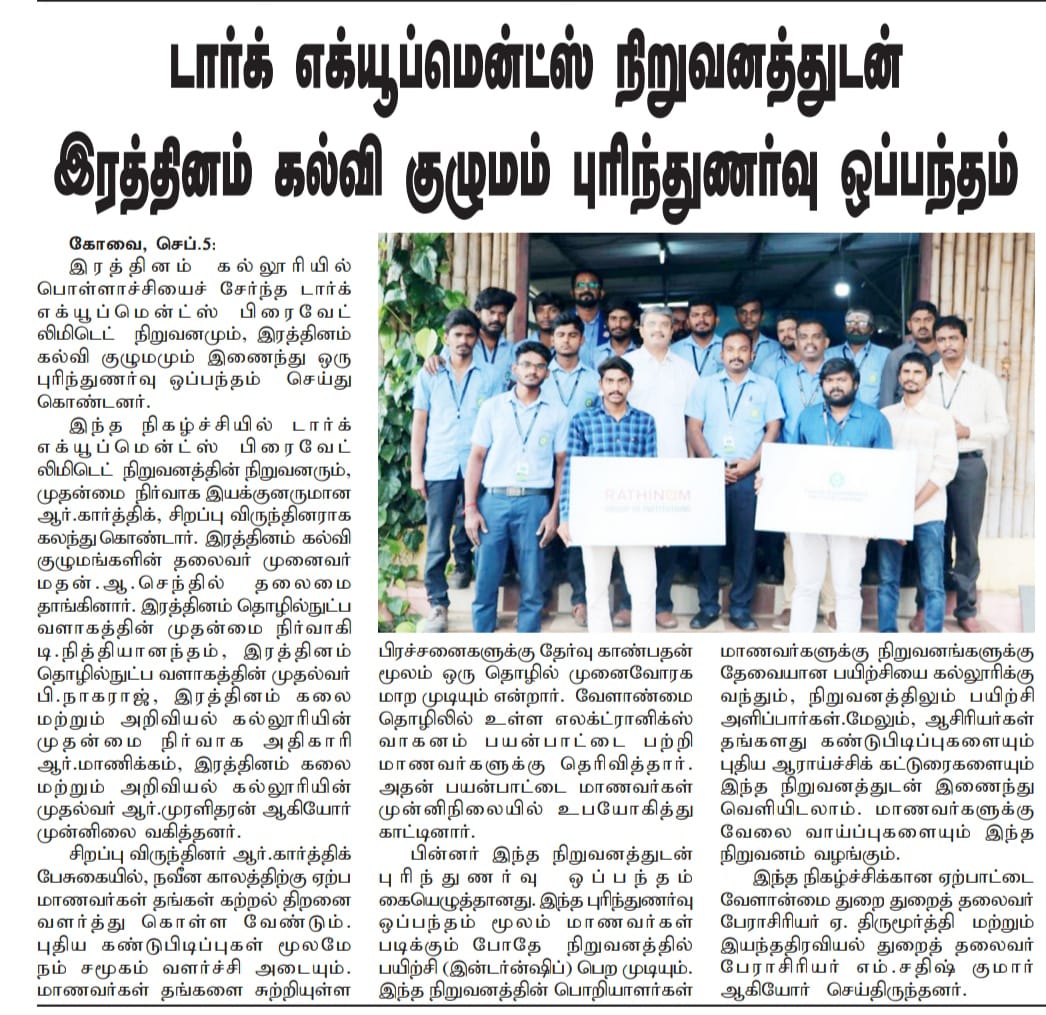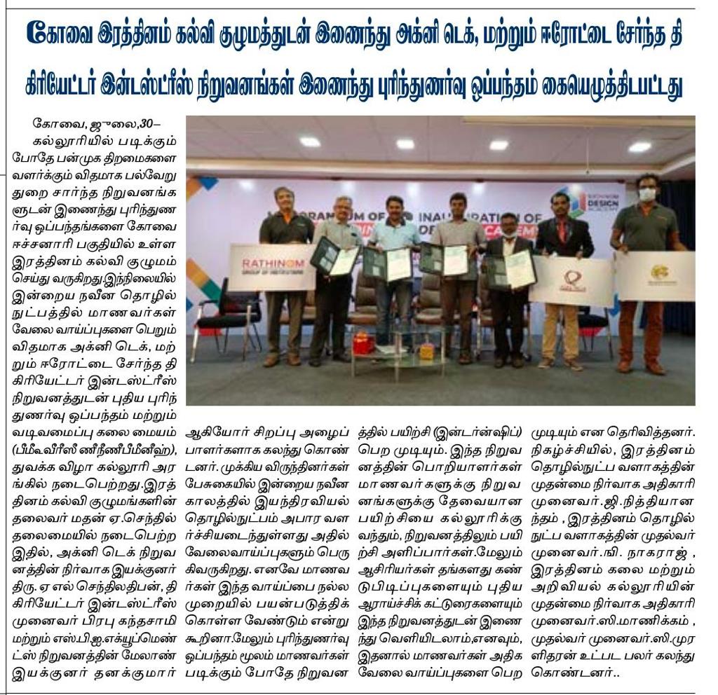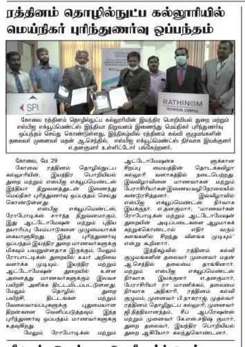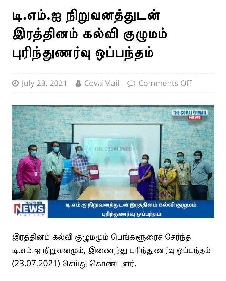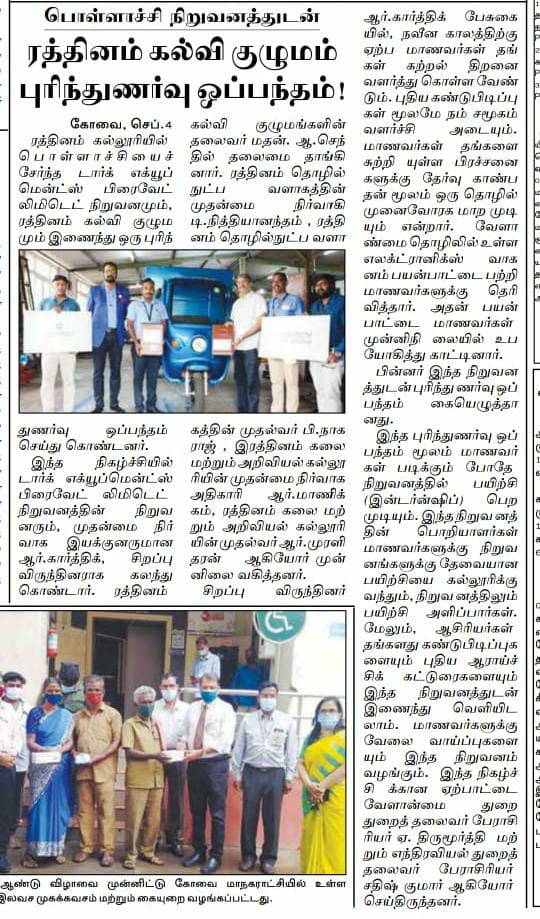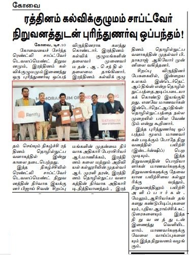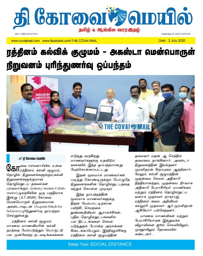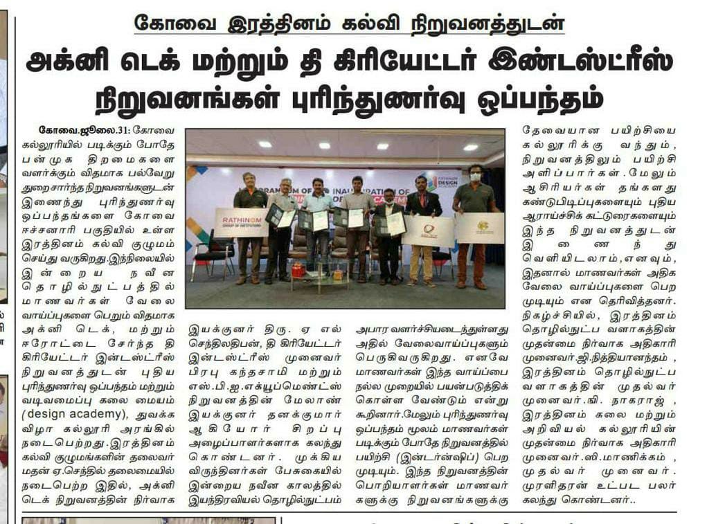 ரத்தினம் கல்லூரி காலிபர் இண்டர் கனெக்ட் சொல்யூசன்ஸ் நிறுவனத்துடன் புரிந்துணர்வு ஒப்பந்தம்