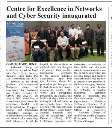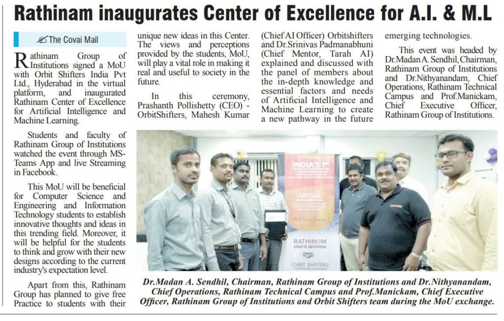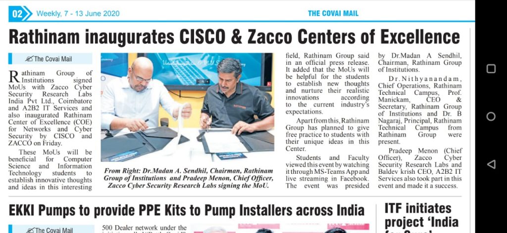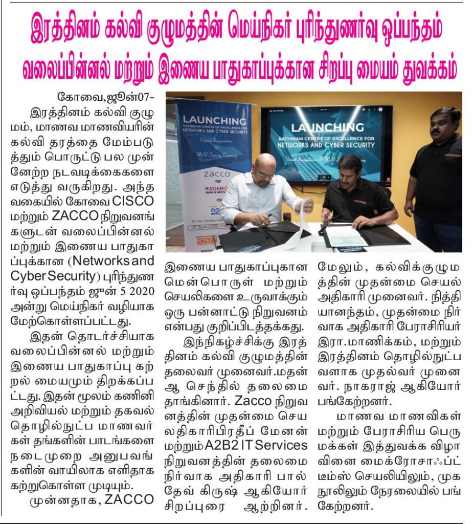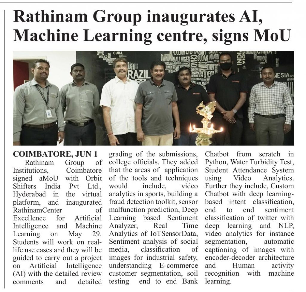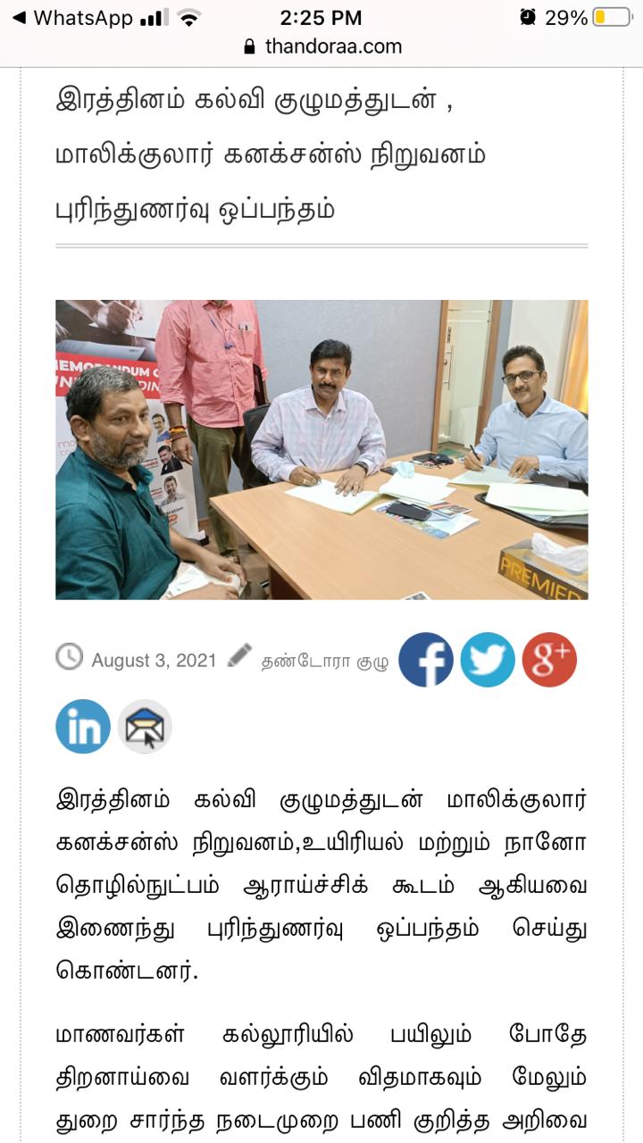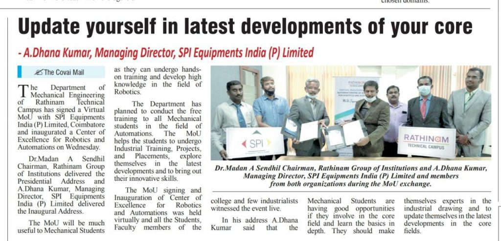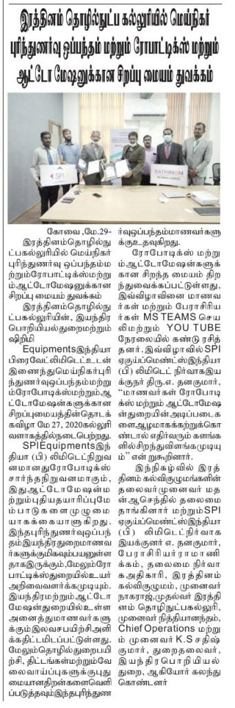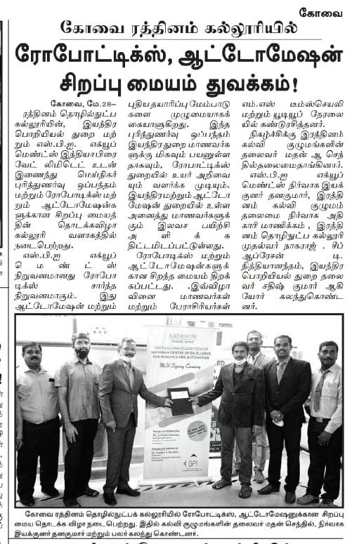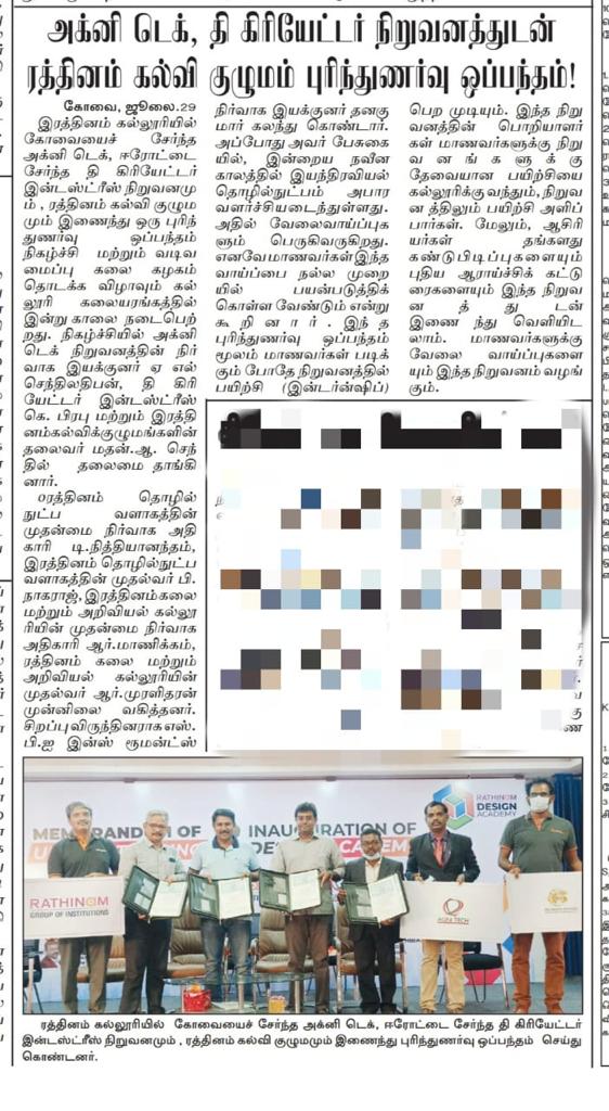 ரத்தினம் கல்லூரி காலிபர் இண்டர் கனெக்ட் சொல்யூசன்ஸ் நிறுவனத்துடன் புரிந்துணர்வு ஒப்பந்தம்