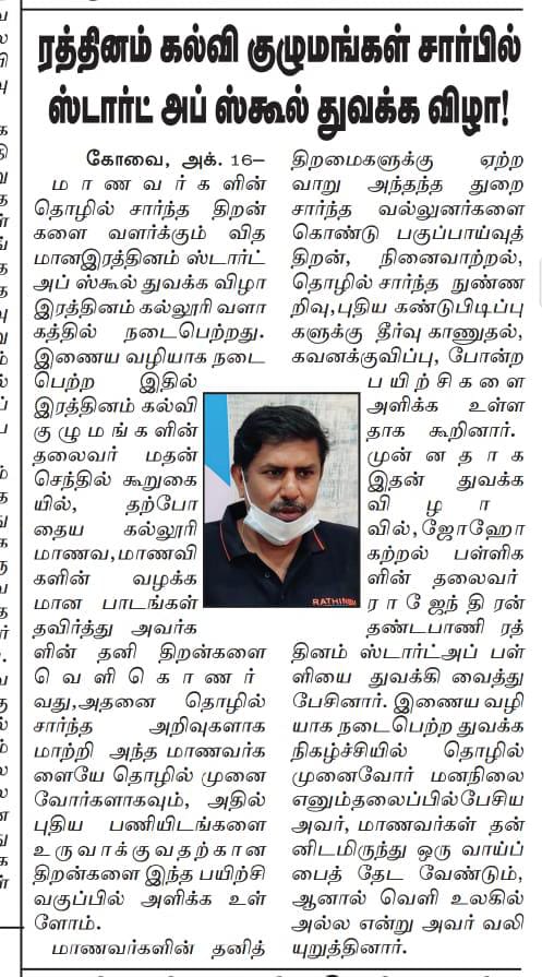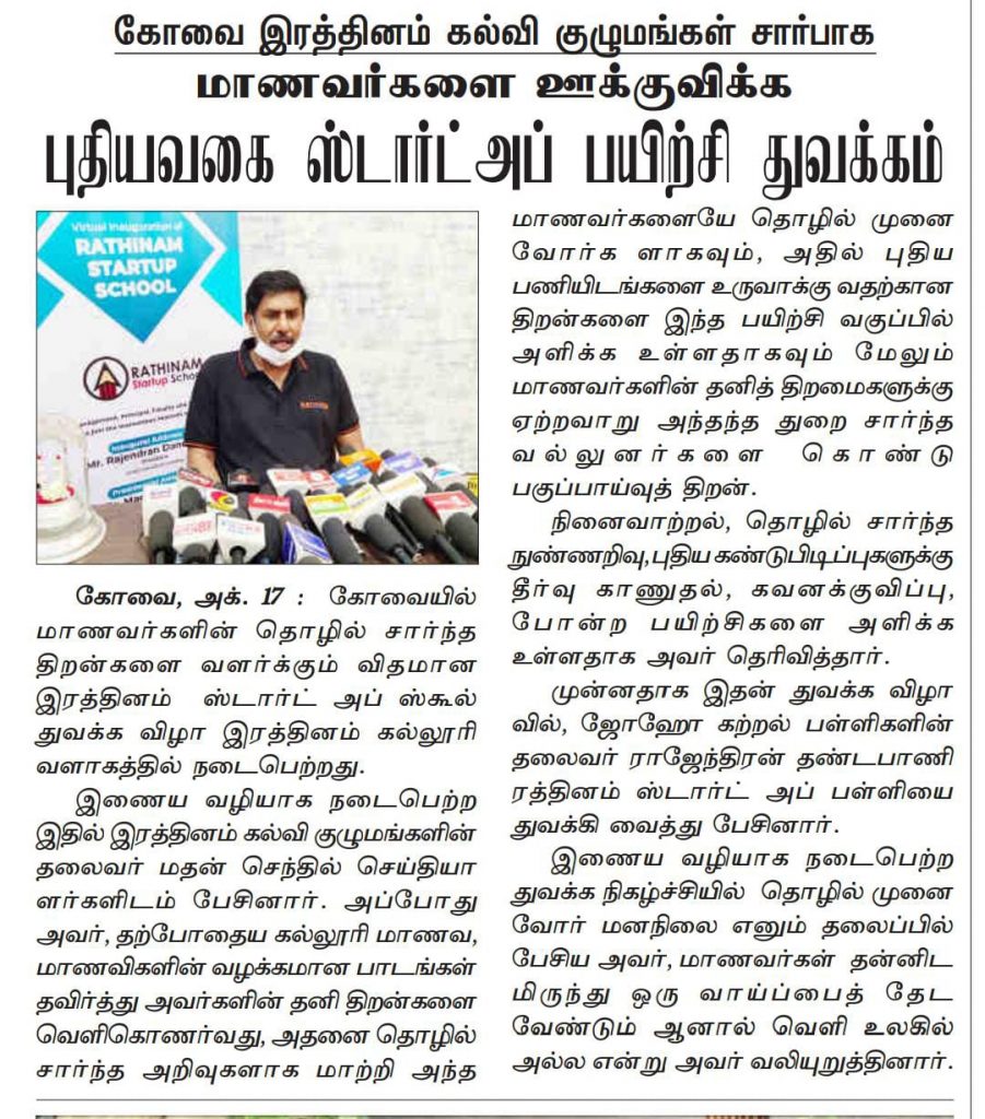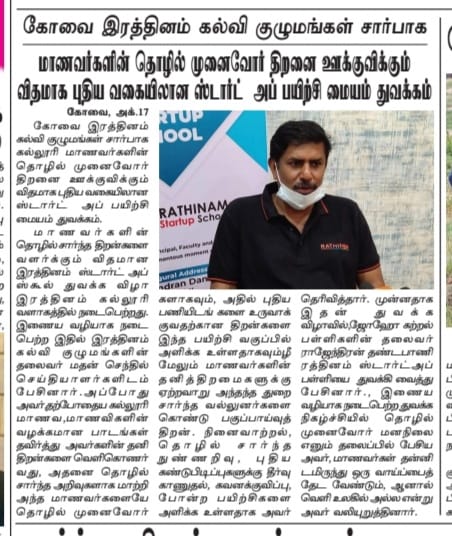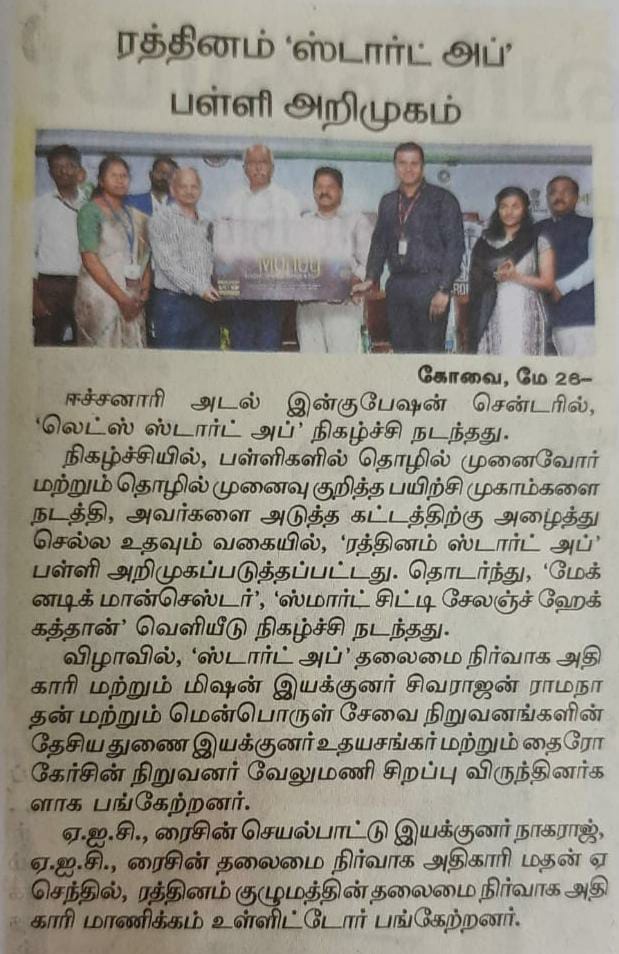 ரத்தினம் கல்லூரியில் தமிழ்நாடு ஸ்டார்ட்-அப் வளர்ச்சி மாநாடு