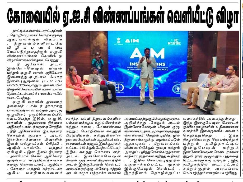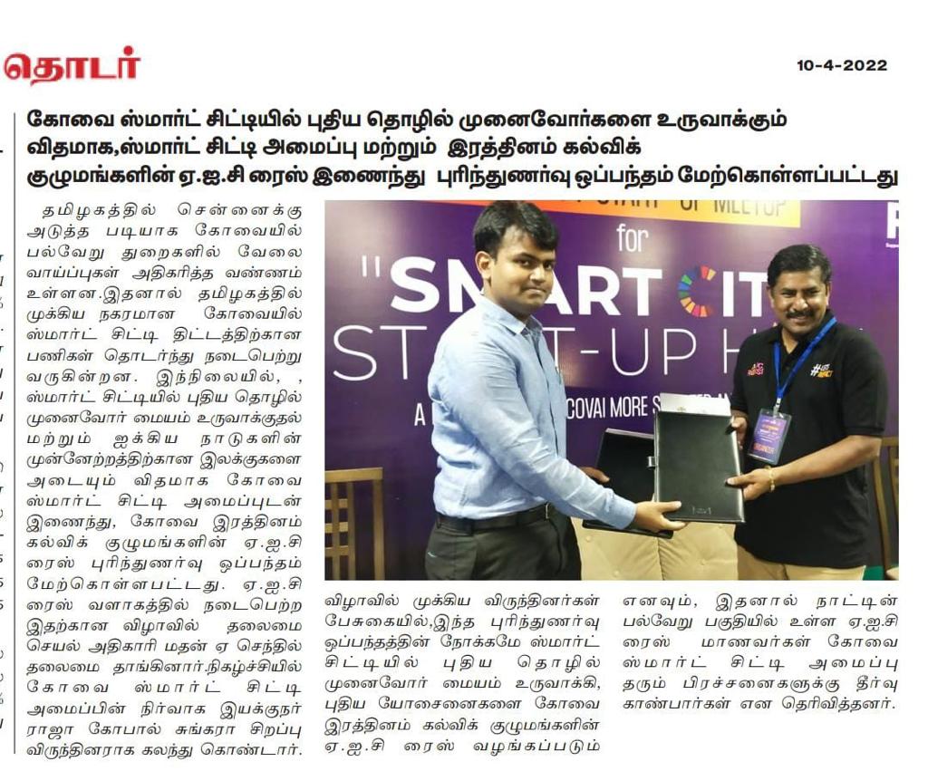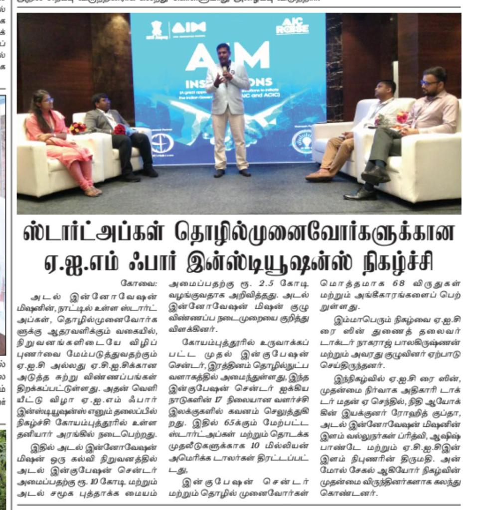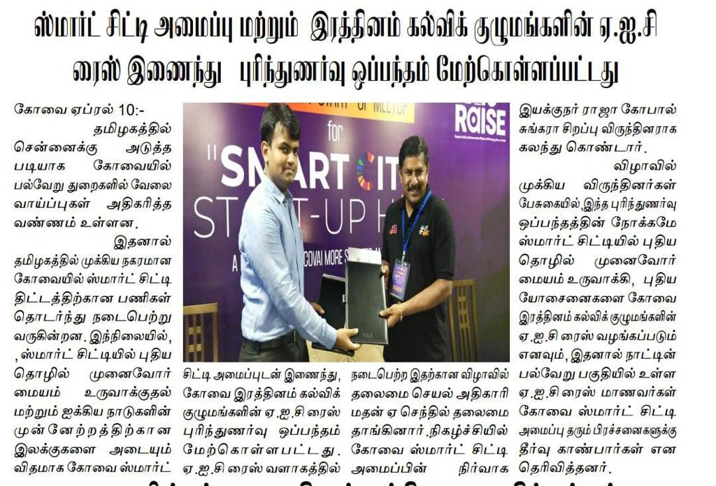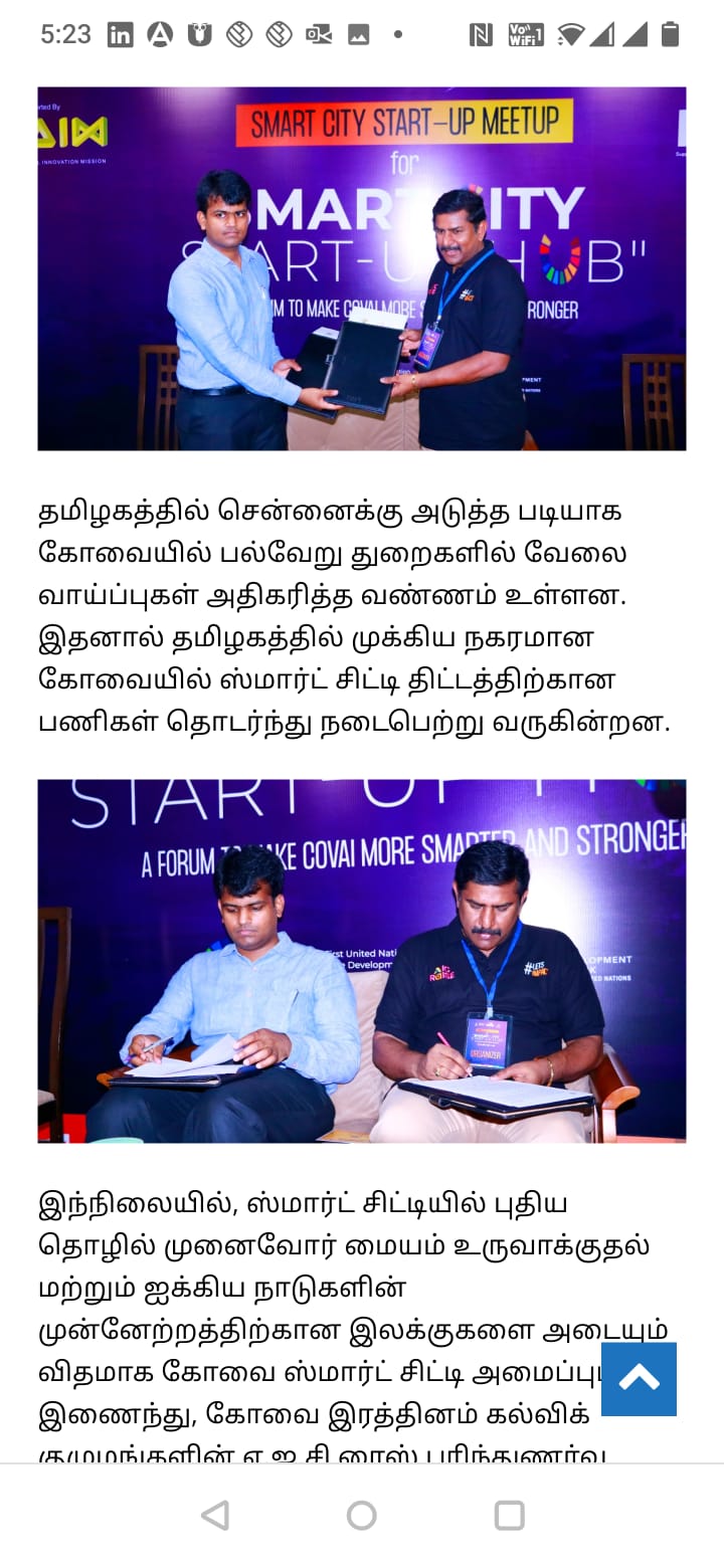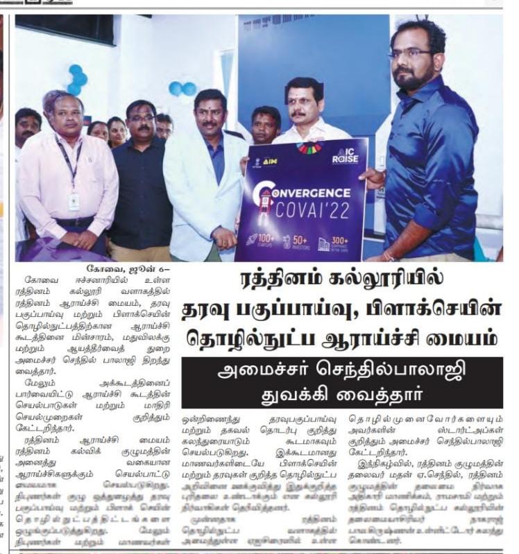 கோவை ரத்தினம் கல்விக் குழுமத்தில் அமைந்துள்ள அடல் இன்குபேஷன் சென்டர் ஐக்கிய நாடுகளின் நிலையான வளர்ச்சி இலக்கை நோக்கி பயணிக்கின்றது!