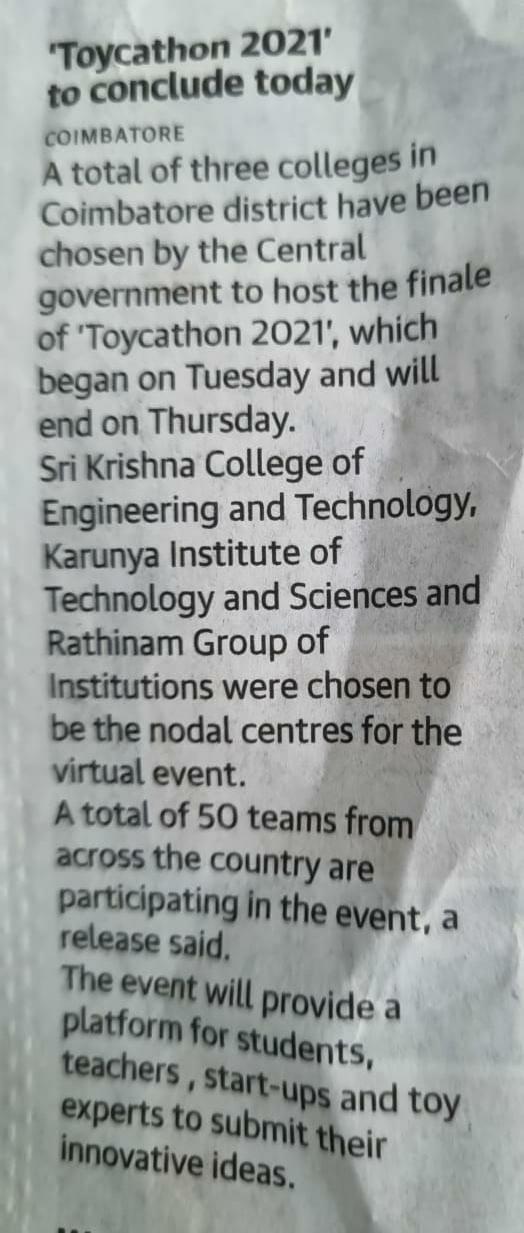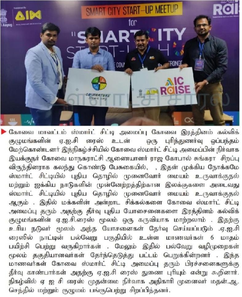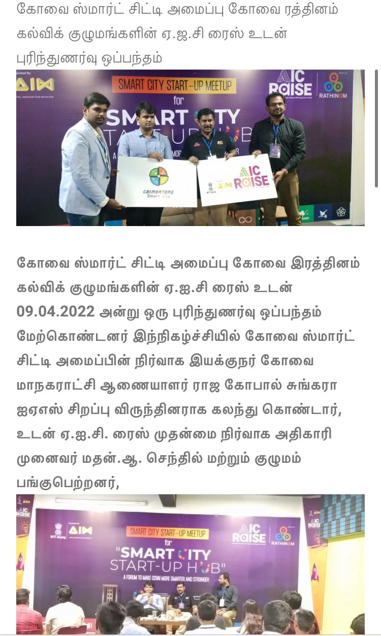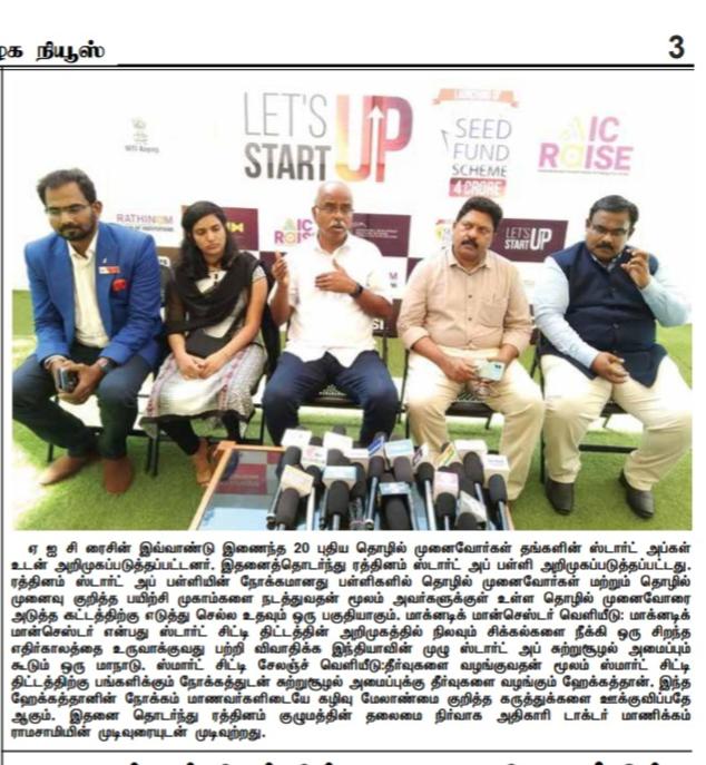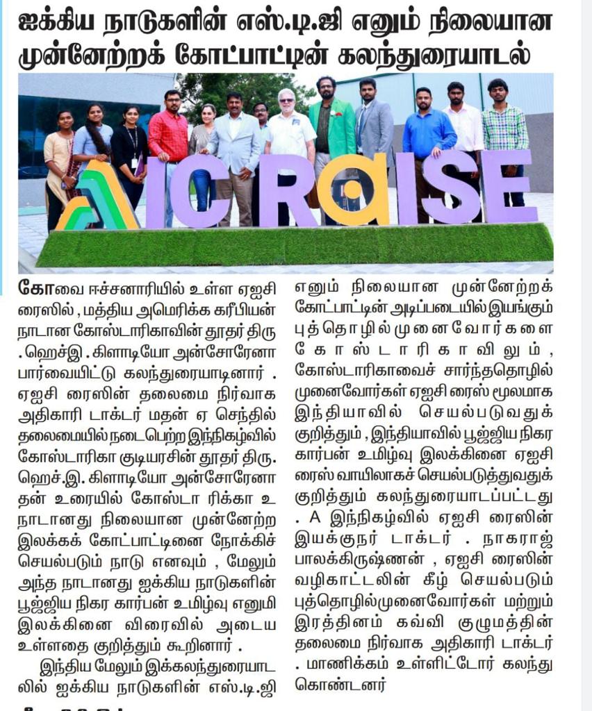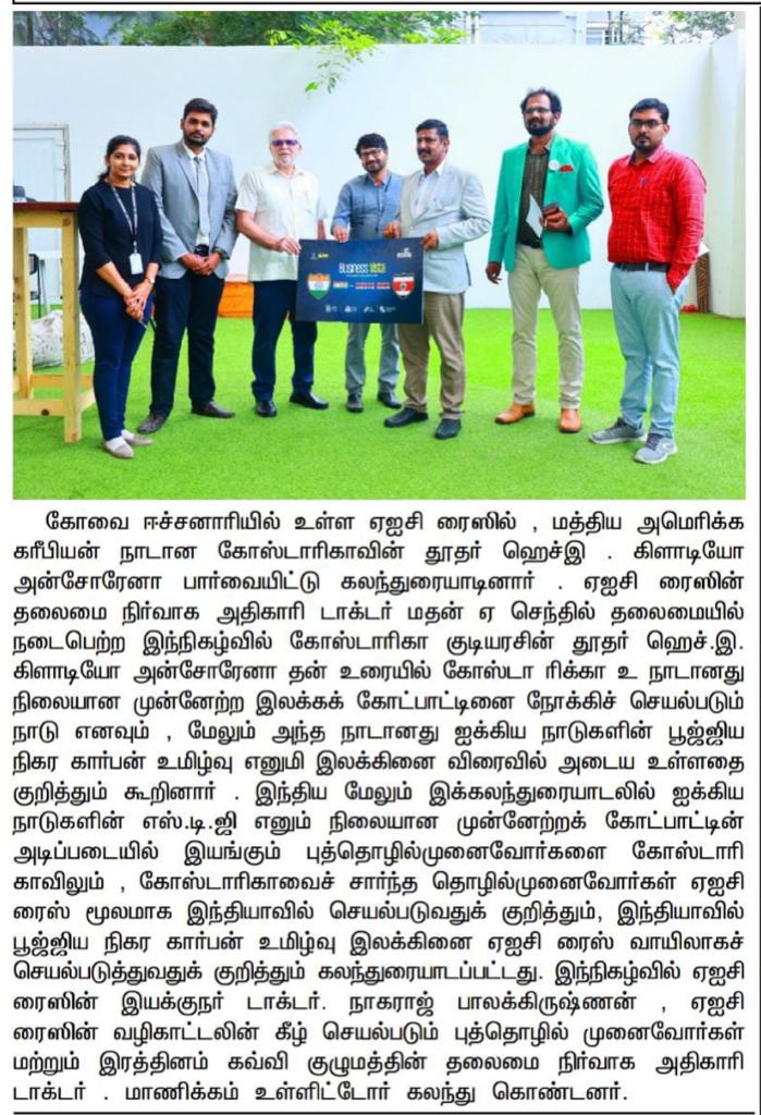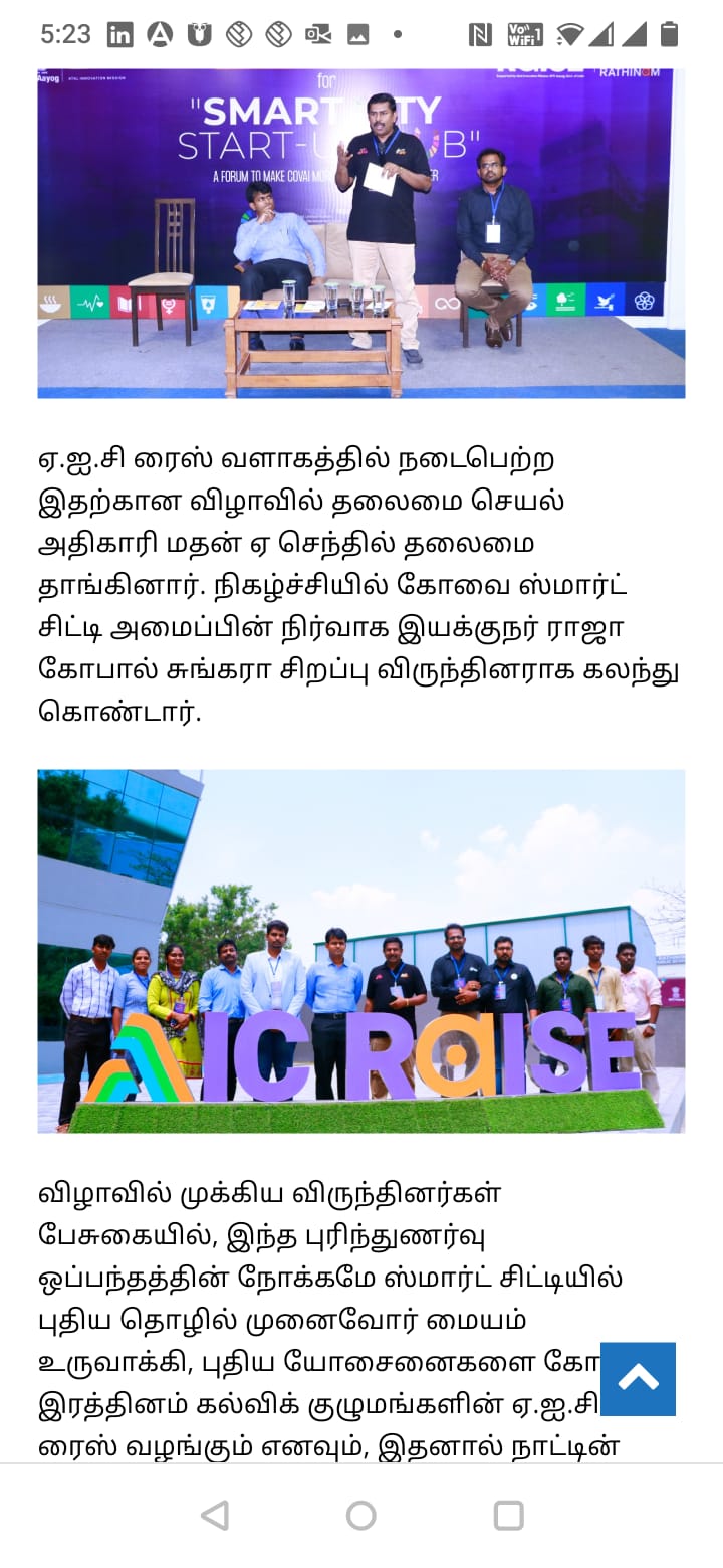 கோவை ரத்தினம் கல்விக் குழுமத்தில் அமைந்துள்ள அடல் இன்குபேஷன் சென்டர் ஐக்கிய நாடுகளின் நிலையான வளர்ச்சி இலக்கை நோக்கி பயணிக்கின்றது!