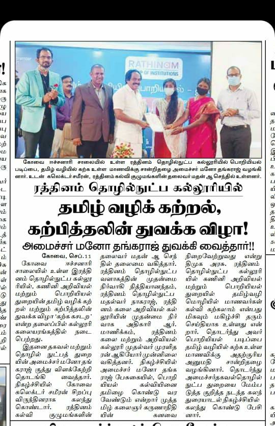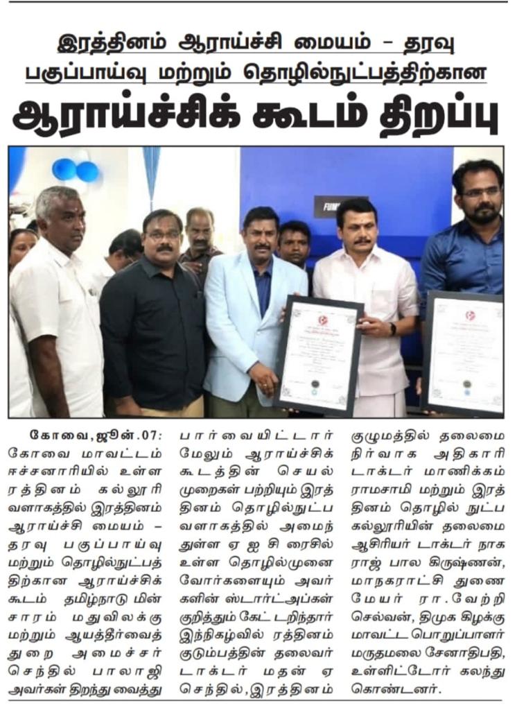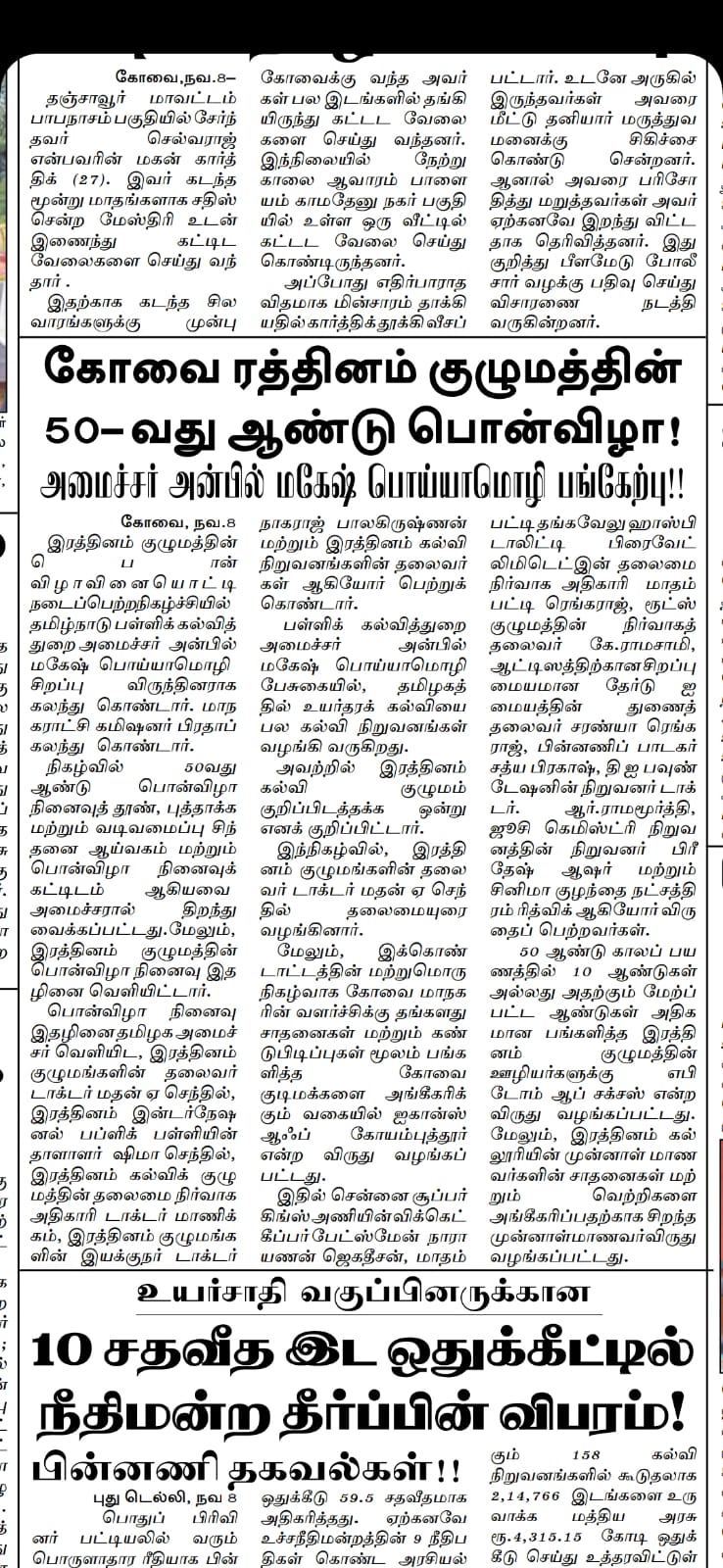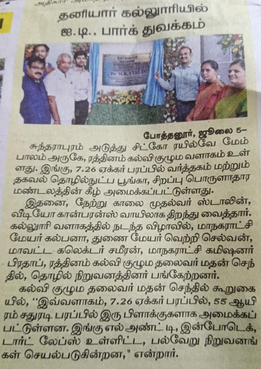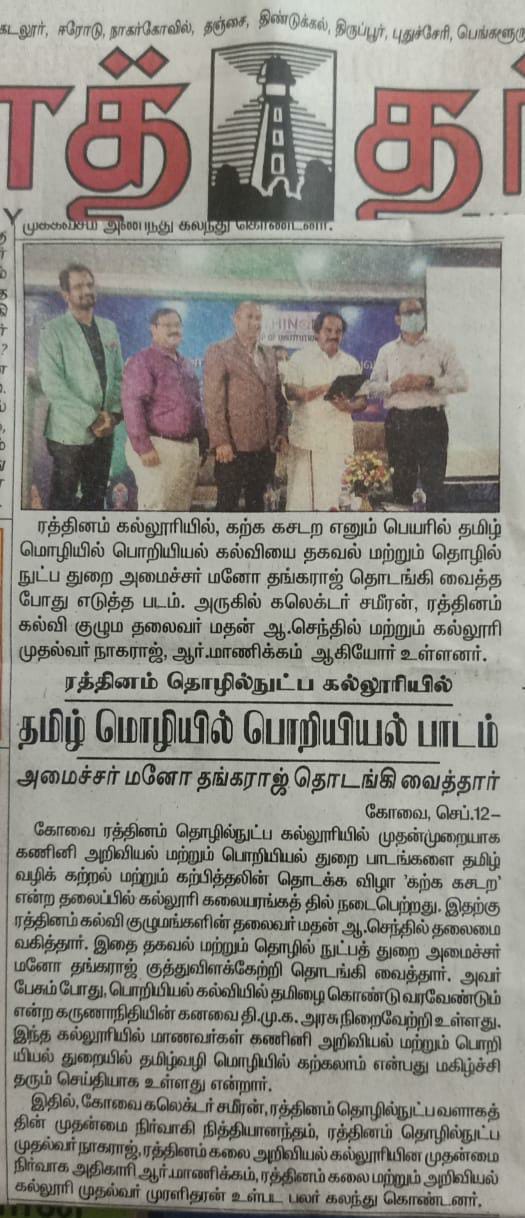 ஈச்சனாரியில் ரத்தினம் குழுமத்தின் பொன் விழா நிகழ்ச்சியில் மாண்புமிகு தமிழ்நாடு பள்ளிக் கல்வித்துறை அமைச்சர் உயர்திரு.அன்பில் மகேஷ் பொய்யாமொழி சிறப்பு விருந்தினராக கலந்து கொண்டு நிகழ்ச்சியை சிறப்பித்தார்.