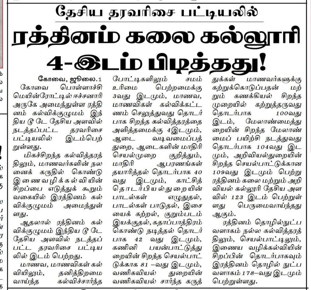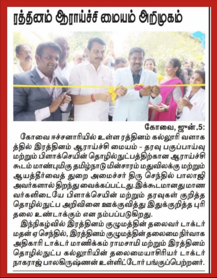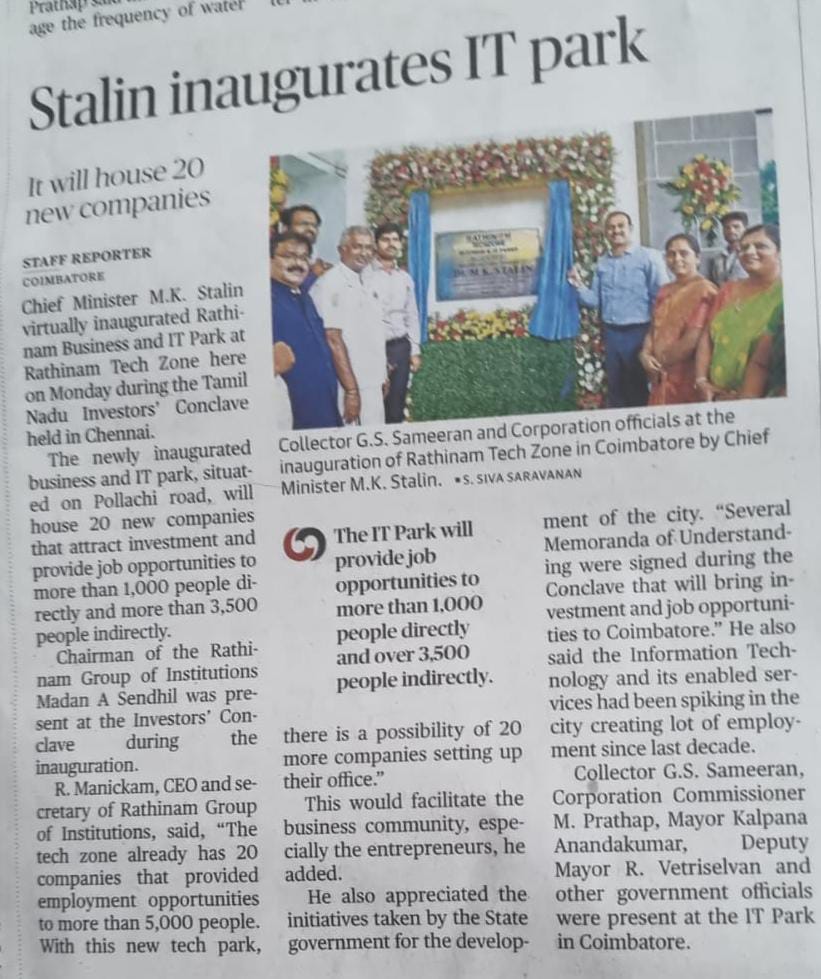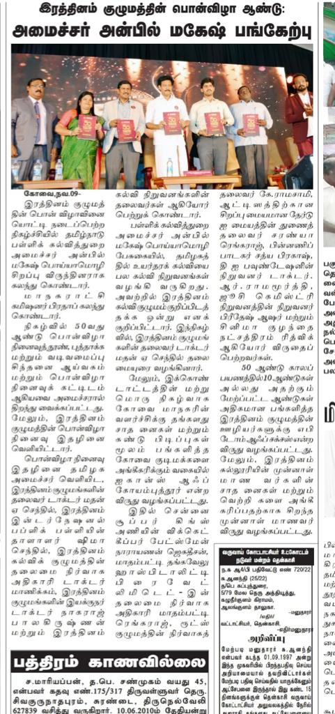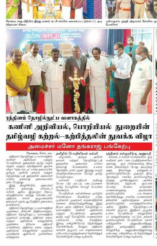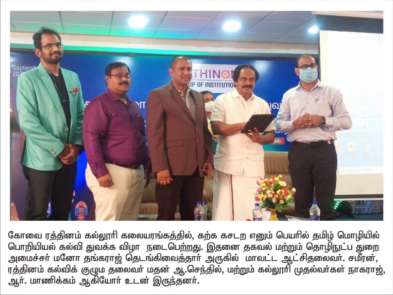 ஈச்சனாரியில் ரத்தினம் குழுமத்தின் பொன் விழா நிகழ்ச்சியில் மாண்புமிகு தமிழ்நாடு பள்ளிக் கல்வித்துறை அமைச்சர் உயர்திரு.அன்பில் மகேஷ் பொய்யாமொழி சிறப்பு விருந்தினராக கலந்து கொண்டு நிகழ்ச்சியை சிறப்பித்தார்.