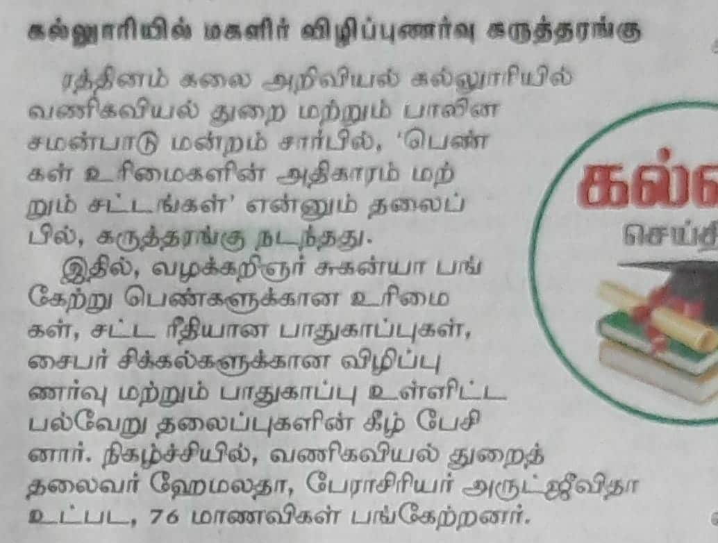 ரத்தினம் கல்லூரியில் தேசிய கருத்தரங்கு