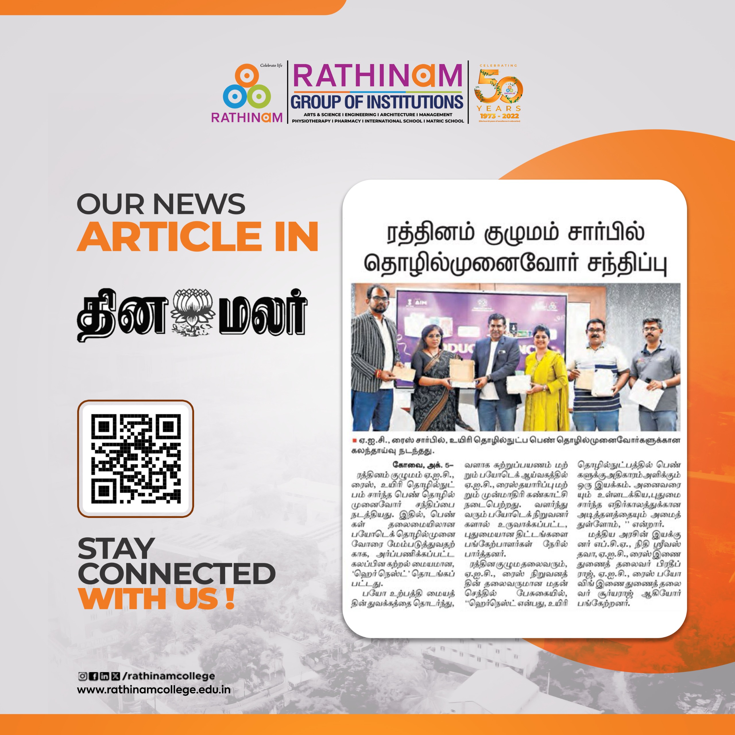 Rathinam College is one of the Best Colleges in Coimbatore, Tamilnadu. As a Top College in Coimbatore, We offer Arts & Science, Engineering, Management, Architecture & Physiotherapy courses. Rathinam began its journey more than 40 years ago with a vision to create an educational community with a global outlook. The dream kick-started when K.P.M Matriculation School was established in Eachanari, Coimbatore.